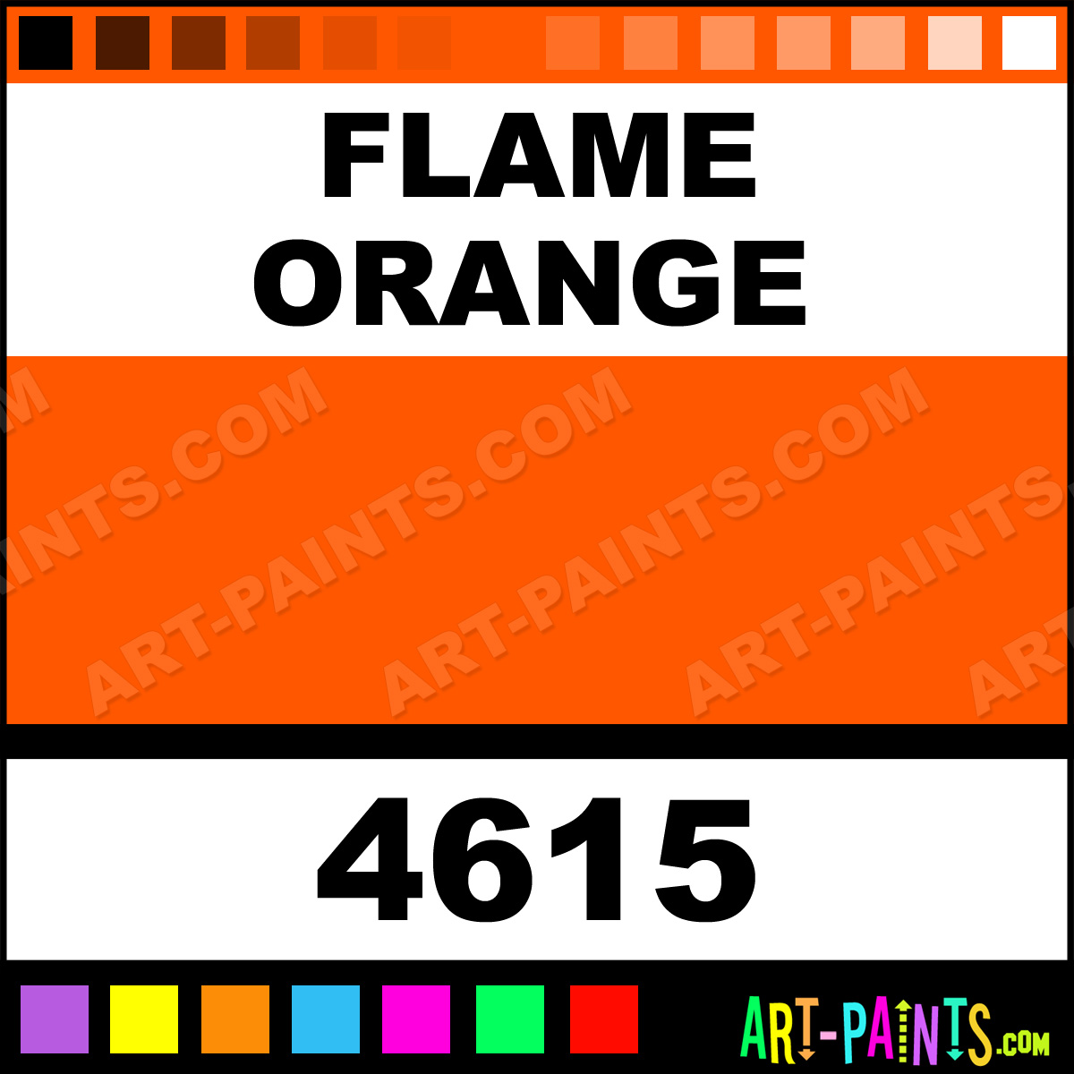 This beautiful Aquacote Fluorescent Enamel shade is called Flame Orange, and comes from a company called Ronan. Their product number, along with the HTML color code, RGB, and CMYK codes are listed below. This Beautiful Shade of Flame Orange and others can be found in the Ronan Aquacote Fluorescent Art Paint Gallery! Also be sure to browse through the other wonderful Professional Color Galleries to see more of Ronan Aquacote Fluorescent Enamel Brand Paints and other Paint Manufacturers. And as always, Paint Paint Paint! -Art-Paints.com
