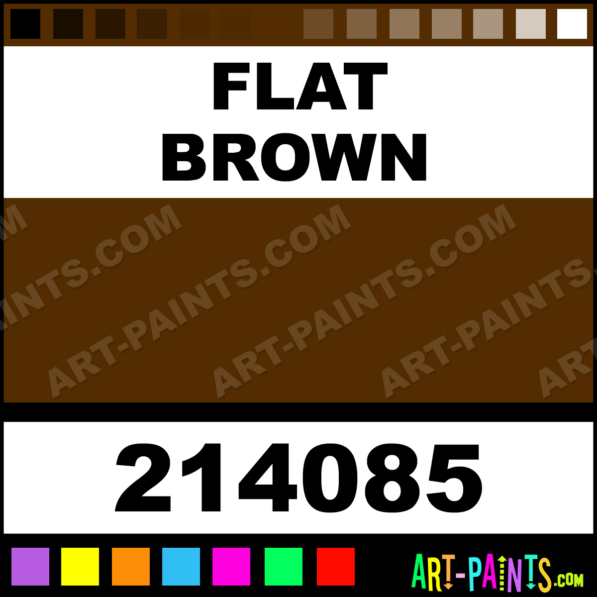 This beautiful Gloss Spray Enamel shade is called Flat Brown, and comes from a company called Rust-Oleum. Their product number, along with the HTML color code, RGB, and CMYK codes are listed below. This Beautiful Shade of Flat Brown and others can be found in the Rust-Oleum Gloss Spray Art Paint Gallery! Also be sure to browse through the other wonderful Professional Color Galleries to see more of Rust-Oleum Gloss Spray Enamel Brand Paints and other Paint Manufacturers. And as always, Paint Paint Paint! -Art-Paints.com
