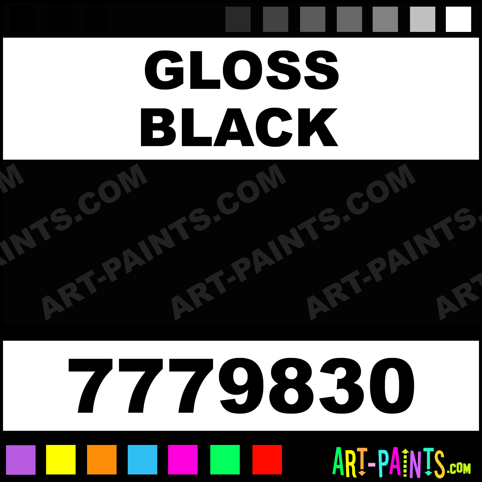 This beautiful Gloss Spray Enamel shade is called Gloss Black, and comes from a company called Rust-Oleum. Their product number, along with the HTML color code, RGB, and CMYK codes are listed below. This Beautiful Shade of Gloss Black and others can be found in the Rust-Oleum Gloss Spray Art Paint Gallery! Also be sure to browse through the other wonderful Professional Color Galleries to see more of Rust-Oleum Gloss Spray Enamel Brand Paints and other Paint Manufacturers. And as always, Paint Paint Paint! -Art-Paints.com