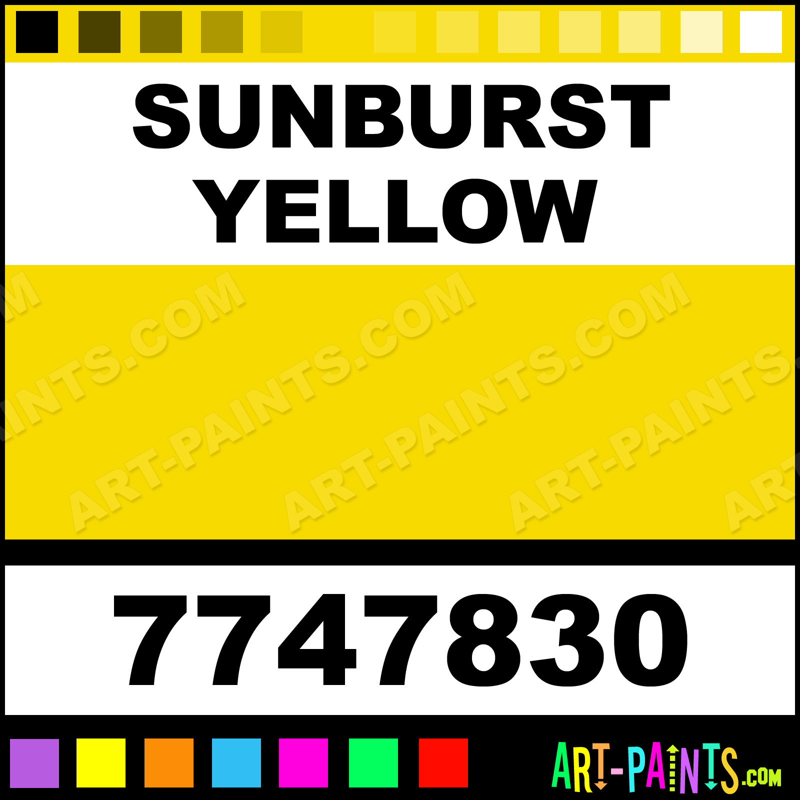 This beautiful Gloss Spray Enamel shade is called Sunburst Yellow, and comes from a company called Rust-Oleum. Their product number, along with the HTML color code, RGB, and CMYK codes are listed below. This Beautiful Shade of Sunburst Yellow and others can be found in the Rust-Oleum Gloss Spray Art Paint Gallery! Also be sure to browse through the other wonderful Professional Color Galleries to see more of Rust-Oleum Gloss Spray Enamel Brand Paints and other Paint Manufacturers. And as always, Paint Paint Paint! -Art-Paints.com