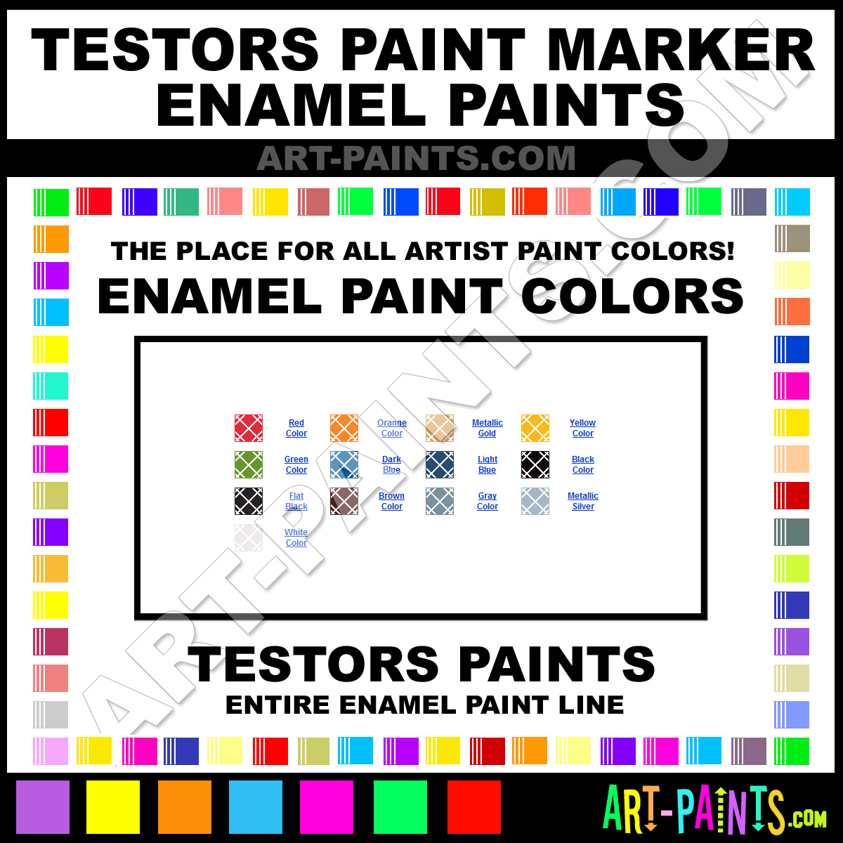 Testors knows Enamel paints! They make a wonderful brand of paint called Testors Paint Marker Enamel Colors that suits all types of artists. They strive to perfect the process of color and are one of the most popular Enamel Paint Brand companies in the world. Enjoy their entire paint brand collection from the list below. Testors makes wonderful Artists Paints that everyone is sure to enjoy! Choose an Enamel Paint Color below to view that Hue and all their great related color paints. Paint on!     -Art-Paints.com