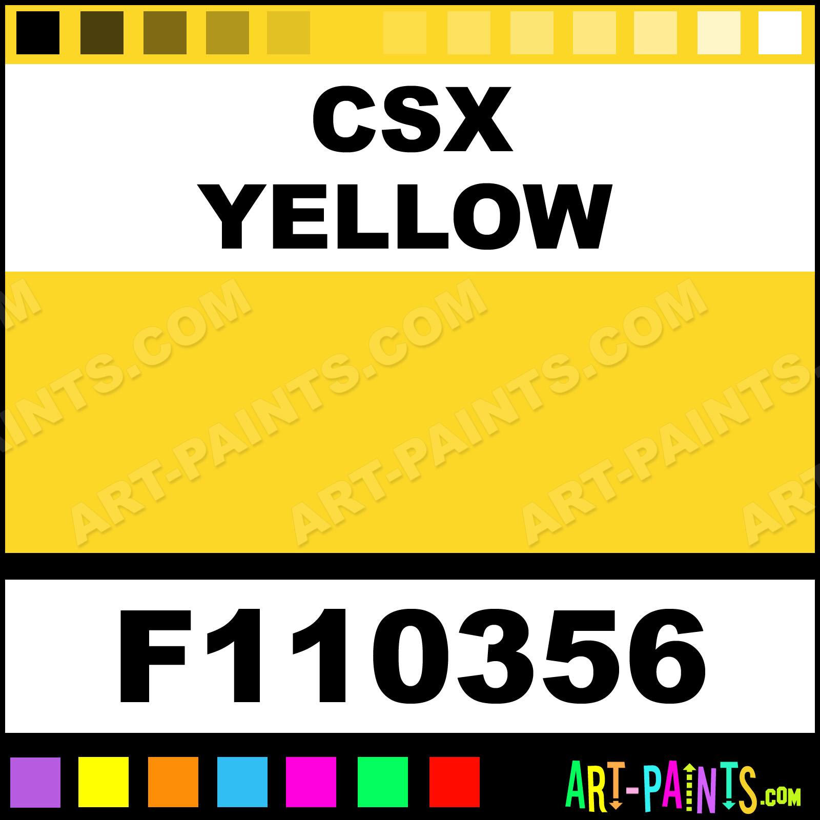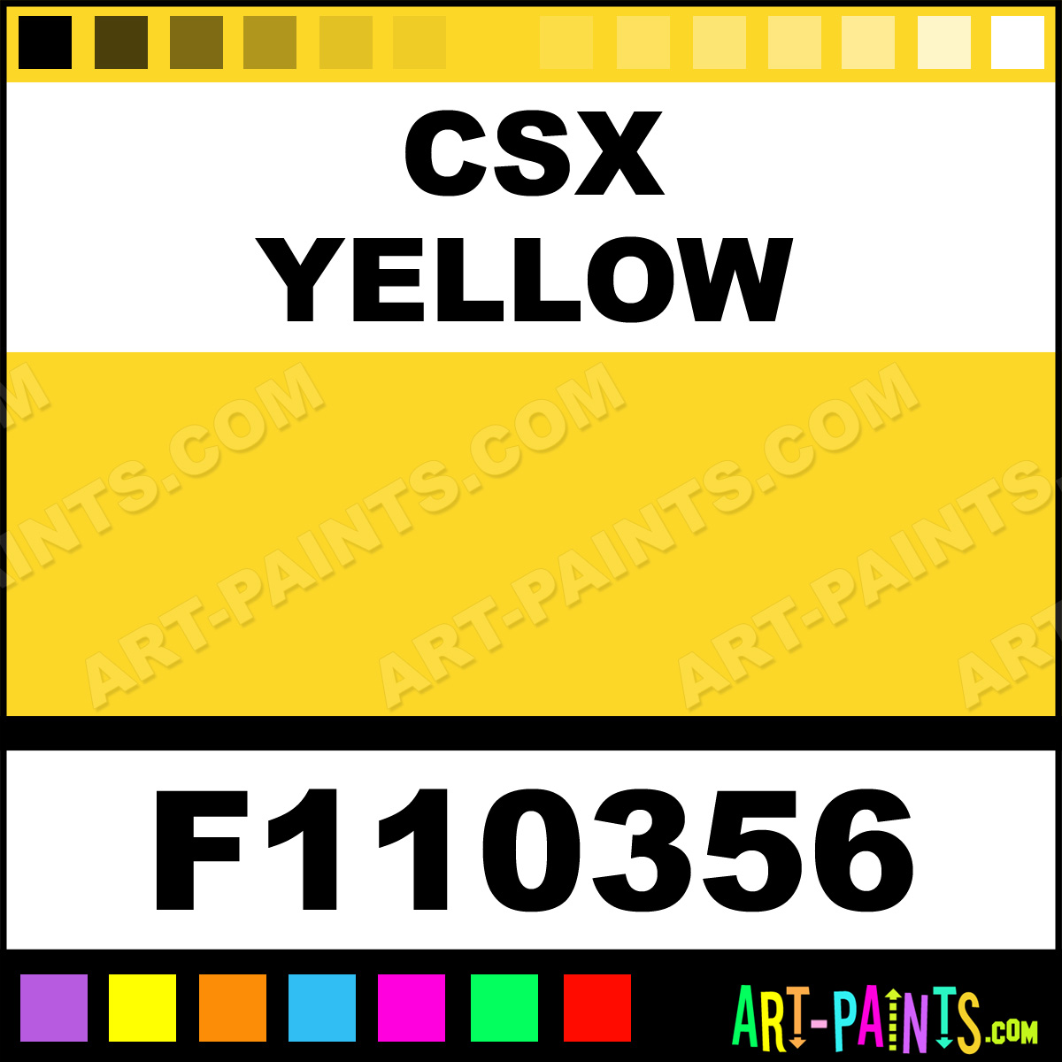 This beautiful Railroad Enamel shade is called CSX Yellow, and comes from a company called Testors. Their product number, along with the HTML color code, RGB, and CMYK codes are listed below. This Beautiful Shade of CSX Yellow and others can be found in the Testors Railroad Art Paint Gallery! Also be sure to browse through the other wonderful Professional Color Galleries to see more of Testors Railroad Enamel Brand Paints and other Paint Manufacturers. And as always, Paint Paint Paint! -Art-Paints.com