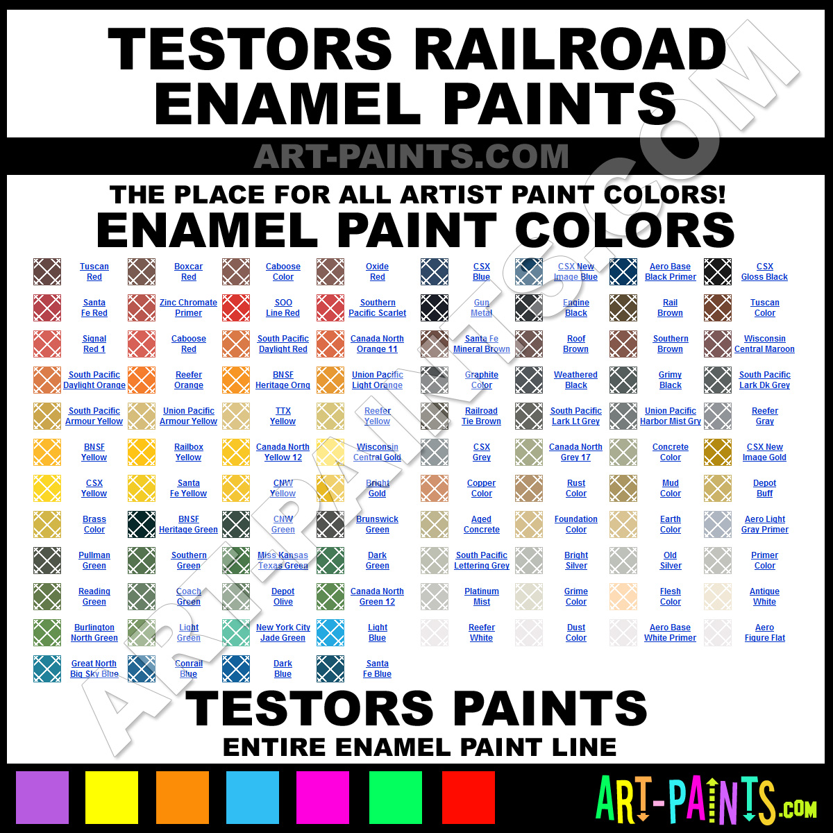 Testors knows Enamel paints! They make a wonderful brand of paint called Testors Railroad Enamel Colors that suits all types of artists. They strive to perfect the process of color and are one of the most popular Enamel Paint Brand companies in the world. Enjoy their entire paint brand collection from the list below. Testors makes wonderful Artists Paints that everyone is sure to enjoy! Choose an Enamel Paint Color below to view that Hue and all their great related color paints. Paint on!     -Art-Paints.com