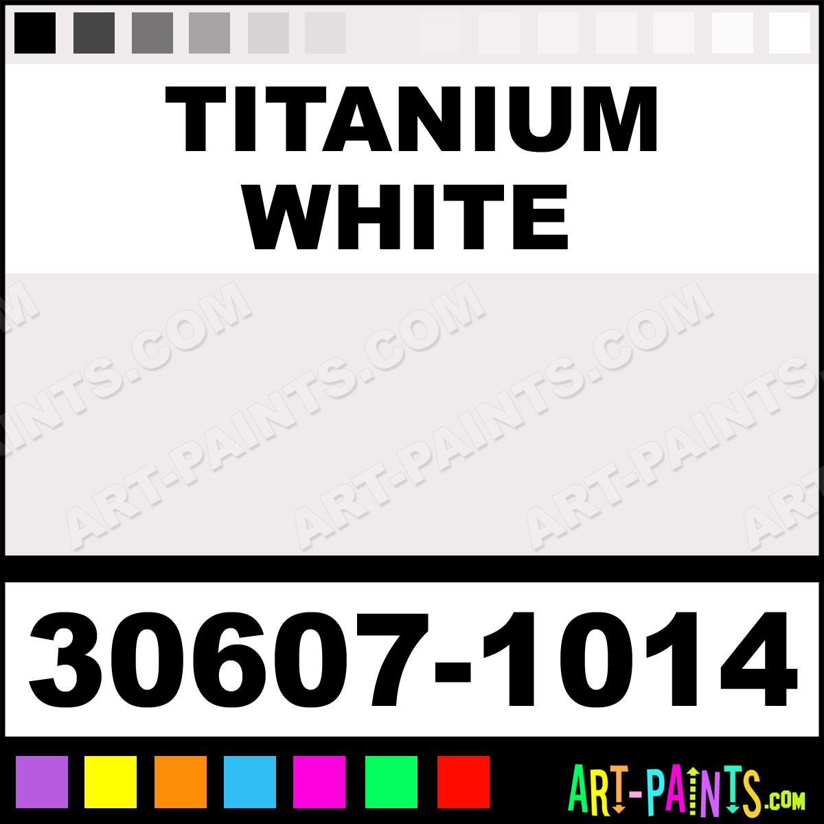 This beautiful Lead-Free Enamel shade is called Titanium White, and comes from a company called Thompson. Their product number, along with the HTML color code, RGB, and CMYK codes are listed below. This Beautiful Shade of Titanium White and others can be found in the Thompson Lead-Free Art Paint Gallery! Also be sure to browse through the other wonderful Professional Color Galleries to see more of Thompson Lead-Free Enamel Brand Paints and other Paint Manufacturers. And as always, Paint Paint Paint! -Art-Paints.com