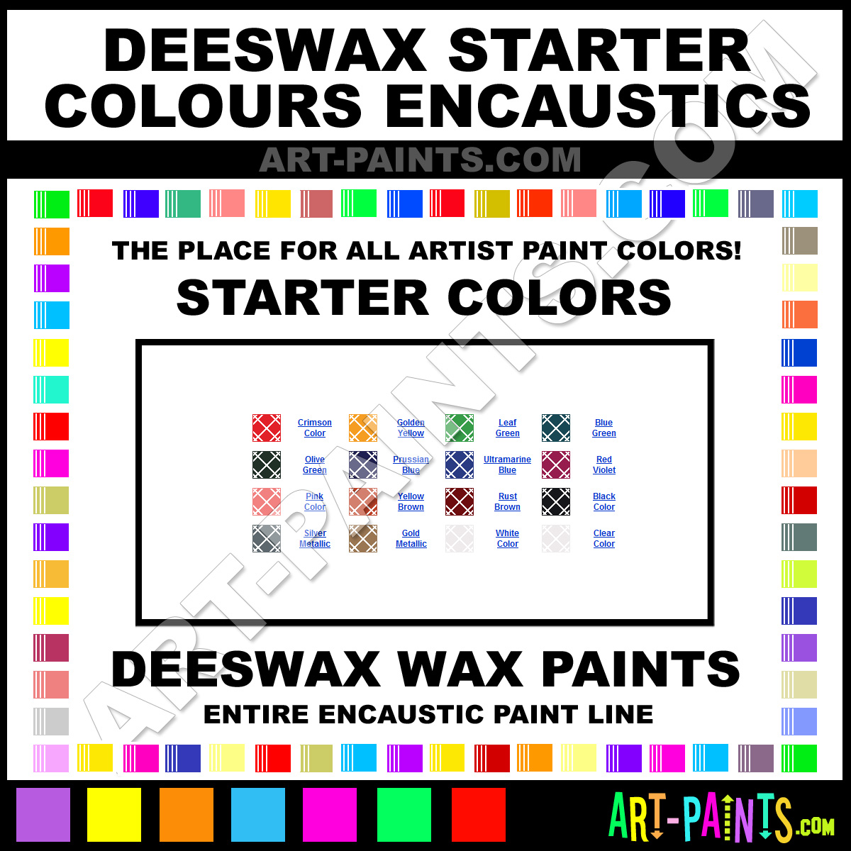 Deeswax knows Encaustic paints! They make a wonderful brand of paint called Deeswax Starter Colours Encaustic Wax, Beeswax Colors that suits all types of artists. They strive to perfect the process of color and are one of the most popular Encaustic Wax, Beeswax Paint Brand companies in the world. Enjoy their entire paint brand collection from the list below. Deeswax makes wonderful Artists Paints that everyone is sure to enjoy! Choose an Encaustic Wax Beeswax Paint Color below to view that Hue and all their great related color paints. Paint on!     -Art-Paints.com