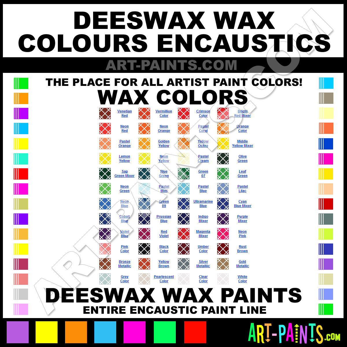 Deeswax makes a beautiful Wax Colours Paint Brand. With a complete line of Encaustic, Wax, Beeswax Color Paints, 48 colors in all, available in beautiful hues and colors, they will no doubt keep you painting and smiling at the same time. This brand is very unique and exquisite!