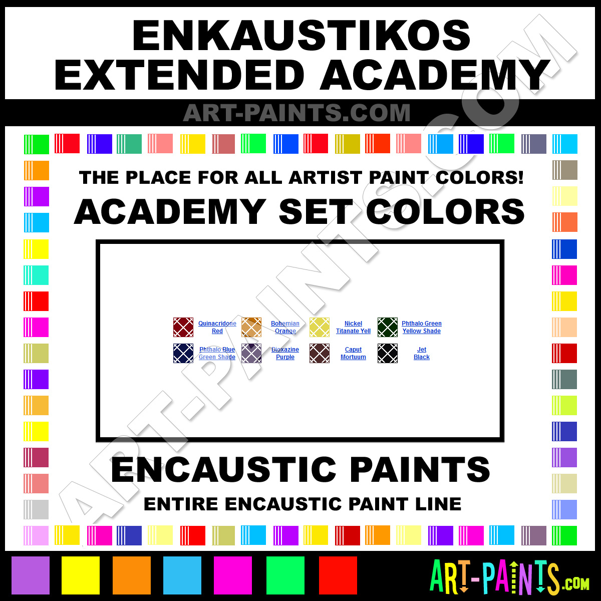 Enkaustikos makes a beautiful Extended Academy Set Paint Brand. With a complete line of Encaustic, Wax, Beeswax Color Paints, 8 colors in all, available in beautiful hues and colors, they will no doubt keep you painting and smiling at the same time. This brand is very unique and exquisite!