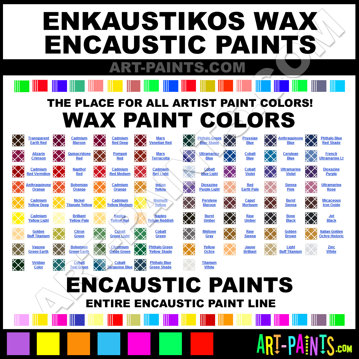 Enkaustikos makes a beautiful Wax Paint Brand. With a complete line of Encaustic, Wax, Beeswax Color Paints, 69 colors in all, available in beautiful hues and colors, they will no doubt keep you painting and smiling at the same time. This brand is very unique and exquisite!
