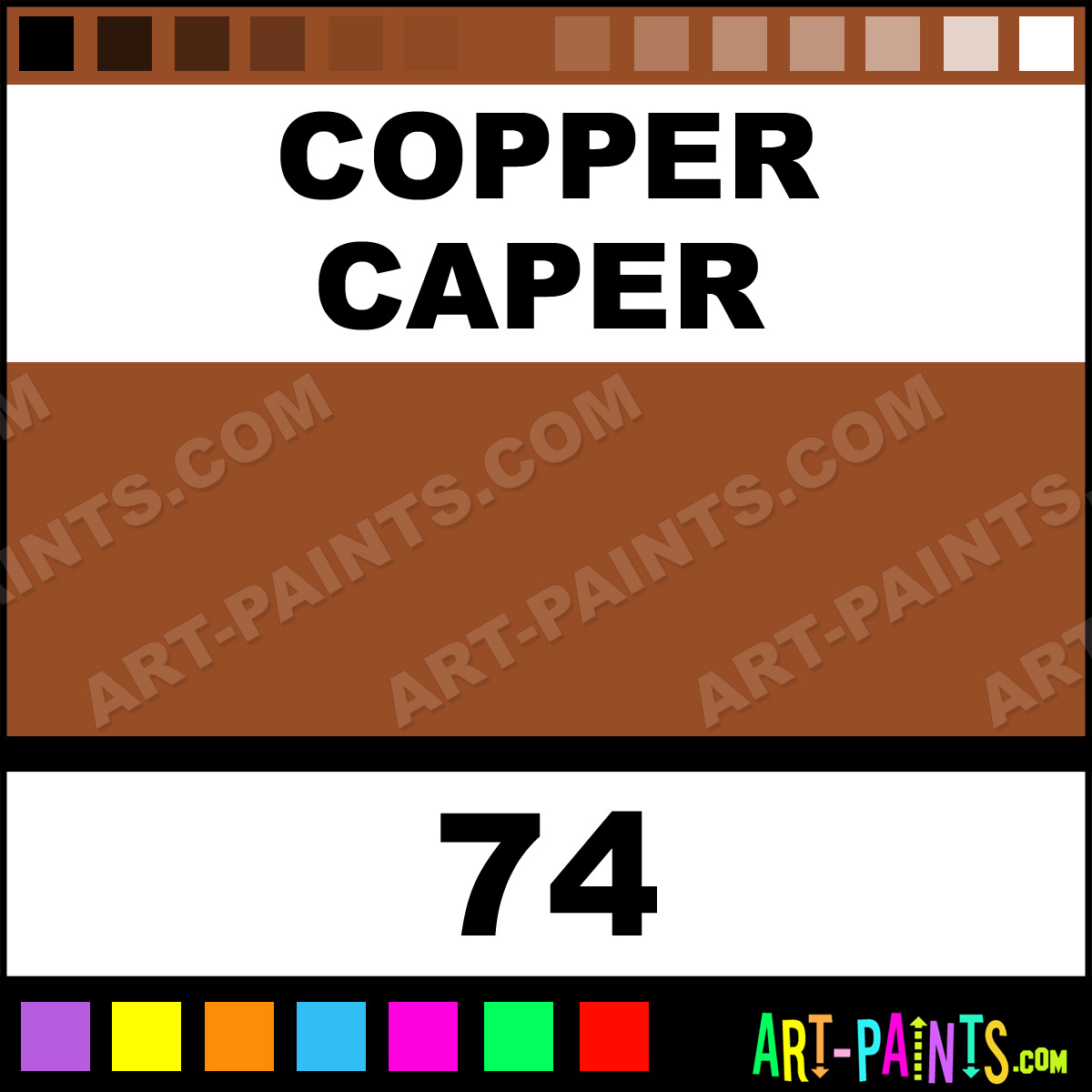 This beautiful Metallics Fabric Textile shade is called Copper Caper, and comes from a company called Angel. Their product number, along with the HTML color code, RGB, and CMYK codes are listed below. This Beautiful Shade of Copper Caper and others can be found in the Angel Metallics Art Paint Gallery! Also be sure to browse through the other wonderful Professional Color Galleries to see more of Angel Metallics Fabric Textile Brand Paints and other Paint Manufacturers. And as always, Paint Paint Paint! -Art-Paints.com