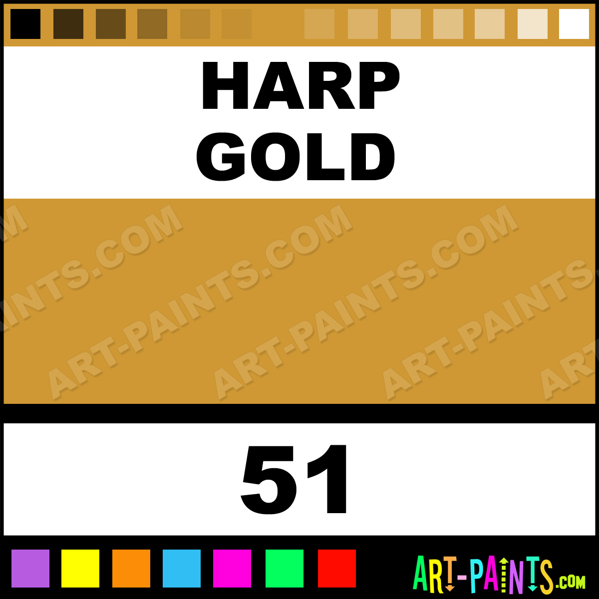 This beautiful Metallics Fabric Textile shade is called Harp Gold, and comes from a company called Angel. Their product number, along with the HTML color code, RGB, and CMYK codes are listed below. This Beautiful Shade of Harp Gold and others can be found in the Angel Metallics Art Paint Gallery! Also be sure to browse through the other wonderful Professional Color Galleries to see more of Angel Metallics Fabric Textile Brand Paints and other Paint Manufacturers. And as always, Paint Paint Paint! -Art-Paints.com