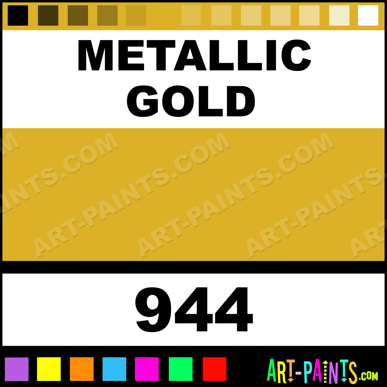 This beautiful Glitter and Metallic Fabric Textile shade is called Metallic Gold, and comes from a company called Aunt Marthas. Their product number, along with the HTML color code, RGB, and CMYK codes are listed below. This Beautiful Shade of Metallic Gold and others can be found in the Aunt Marthas Glitter and Metallic Art Paint Gallery! Also be sure to browse through the other wonderful Professional Color Galleries to see more of Aunt Marthas Glitter and Metallic Fabric Textile Brand Paints and other Paint Manufacturers. And as always, Paint Paint Paint! -Art-Paints.com