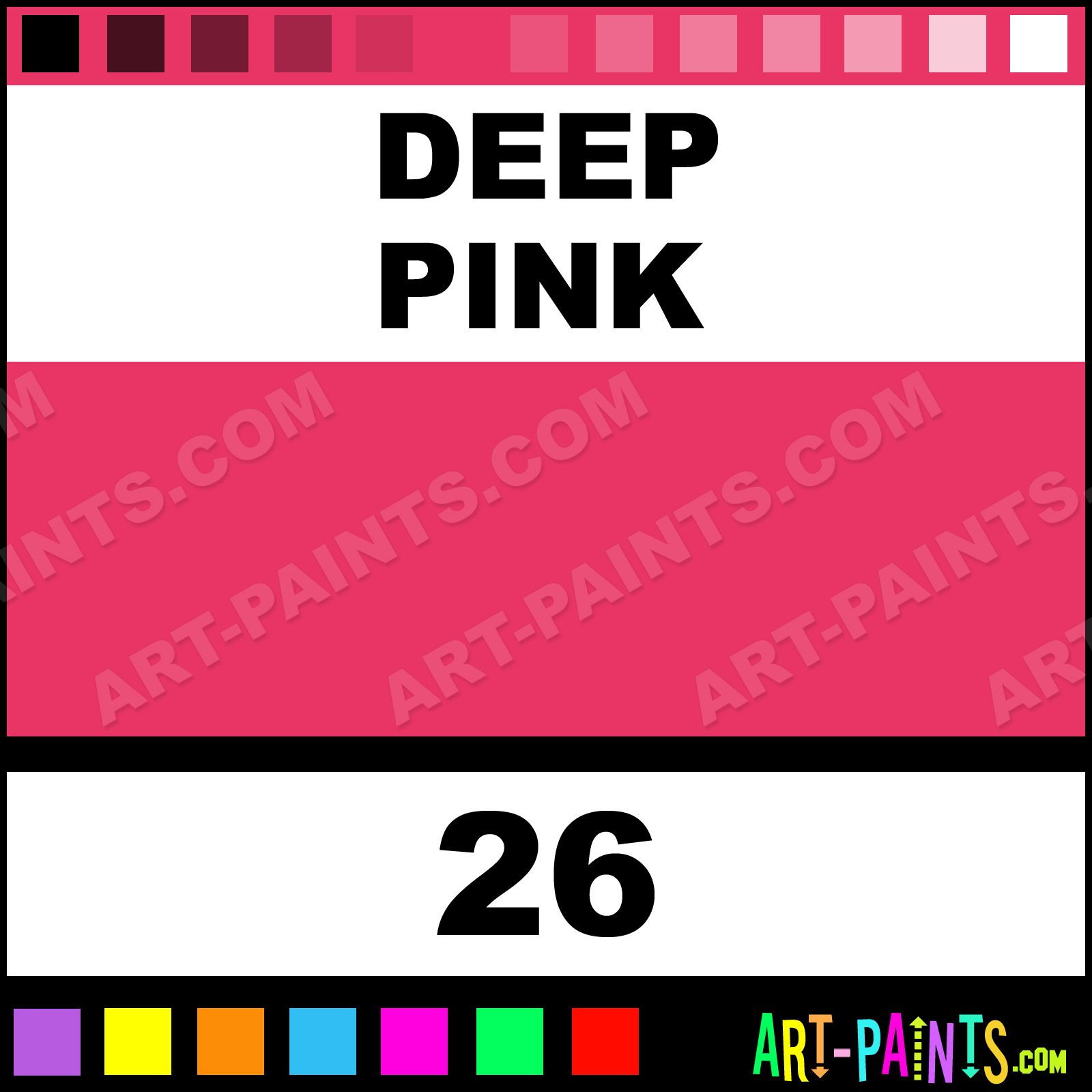 This beautiful Artist Fabric Textile shade is called Deep Pink, and comes from a company called Dylon. Their product number, along with the HTML color code, RGB, and CMYK codes are listed below. This Beautiful Shade of Deep Pink and others can be found in the Dylon Artist Art Paint Gallery! Also be sure to browse through the other wonderful Professional Color Galleries to see more of Dylon Artist Fabric Textile Brand Paints and other Paint Manufacturers. And as always, Paint Paint Paint! -Art-Paints.com