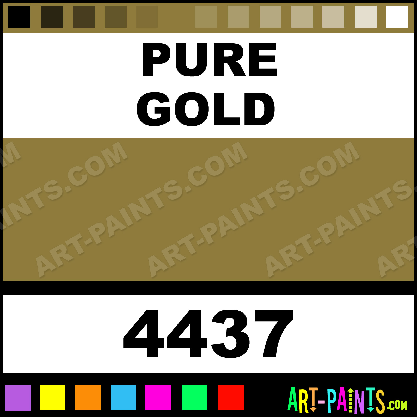 This beautiful Colors Fabric Textile shade is called Pure Gold, and comes from a company called FolkArt. Their product number, along with the HTML color code, RGB, and CMYK codes are listed below. This Beautiful Shade of Pure Gold and others can be found in the FolkArt Colors Art Paint Gallery! Also be sure to browse through the other wonderful Professional Color Galleries to see more of FolkArt Colors Fabric Textile Brand Paints and other Paint Manufacturers. And as always, Paint Paint Paint! -Art-Paints.com