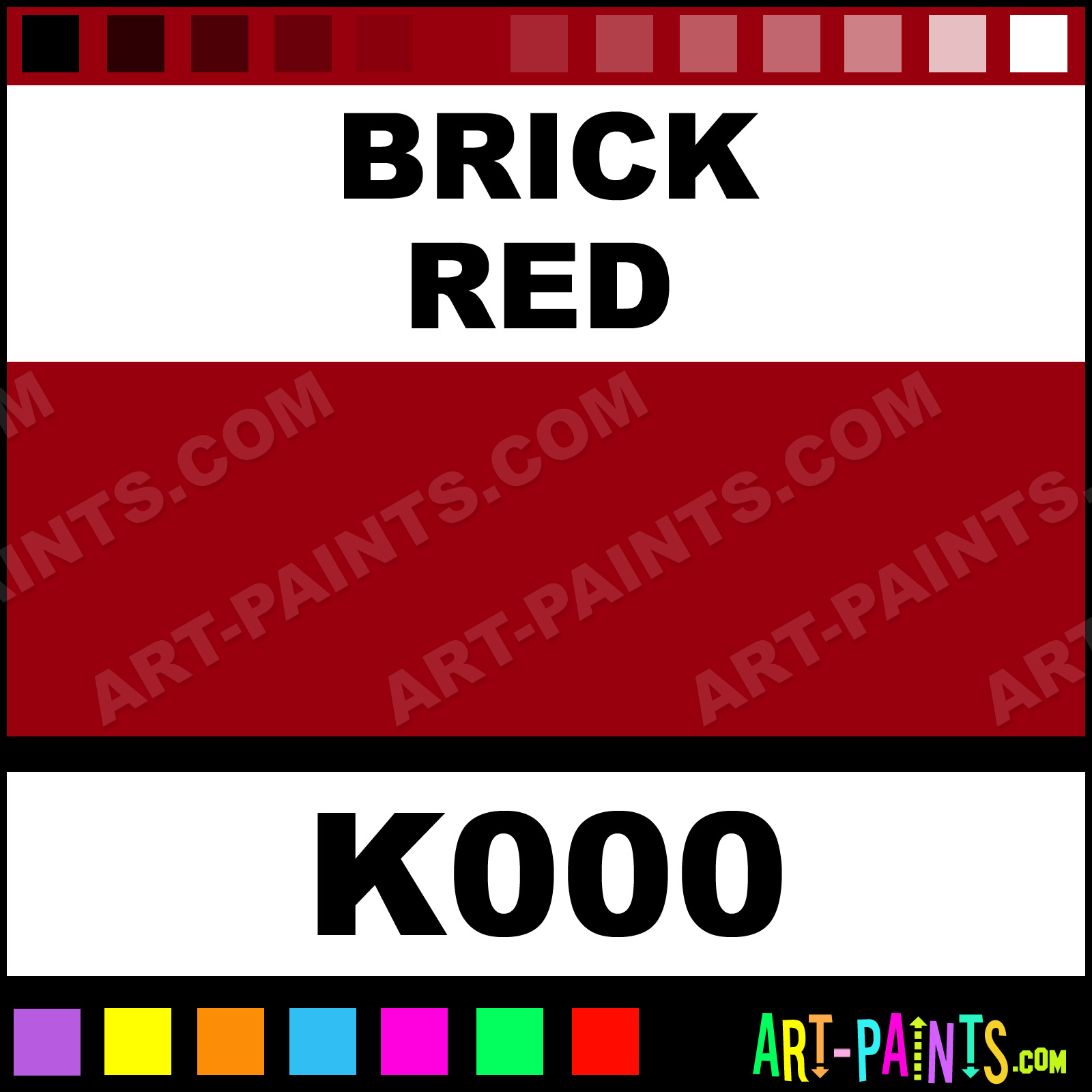 This beautiful Super Deluxe Kit Fabric Textile shade is called Brick Red, and comes from a company called Gingers Cameo. Their product number, along with the HTML color code, RGB, and CMYK codes are listed below. This Beautiful Shade of Brick Red and others can be found in the Gingers Cameo Super Deluxe Kit Art Paint Gallery! Also be sure to browse through the other wonderful Professional Color Galleries to see more of Gingers Cameo Super Deluxe Kit Fabric Textile Brand Paints and other Paint Manufacturers. And as always, Paint Paint Paint! -Art-Paints.com