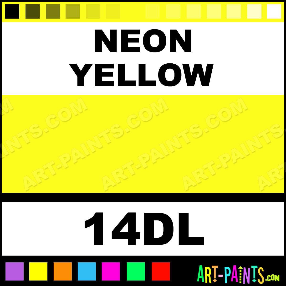 This beautiful Liquid Decorator Fabric Textile shade is called Neon Yellow, and comes from a company called PRO Chemical and Dye. Their product number, along with the HTML color code, RGB, and CMYK codes are listed below. This Beautiful Shade of Neon Yellow and others can be found in the PRO Chemical and Dye Liquid Decorator Art Paint Gallery! Also be sure to browse through the other wonderful Professional Color Galleries to see more of PRO Chemical and Dye Liquid Decorator Fabric Textile Brand Paints and other Paint Manufacturers. And as always, Paint Paint Paint! -Art-Paints.com