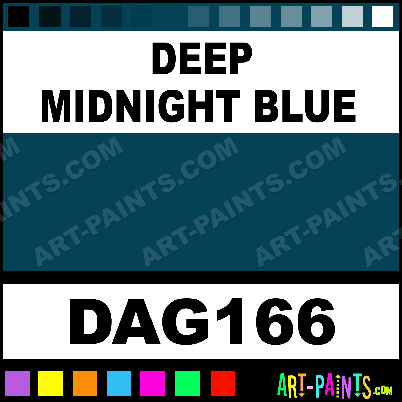This beautiful Gloss Enamels Foam, Foamy or Styrofoam shade is called Deep Midnight Blue, and comes from a company called Americana. Their product number, along with the HTML color code, RGB, and CMYK codes are listed below. Whether it be used for Foam Painting, Foamy Paints or Painting on Foam, this Beautiful Shade of Deep Midnight Blue and others can be found in the Americana Gloss Enamels Foam Paint Gallery! Be sure to browse through the other Professional Color Galleries to see more of Americana Gloss Enamels Foam Brand Paints and other Styrofoam Paint Manufacturers!   -Art-Paints.com