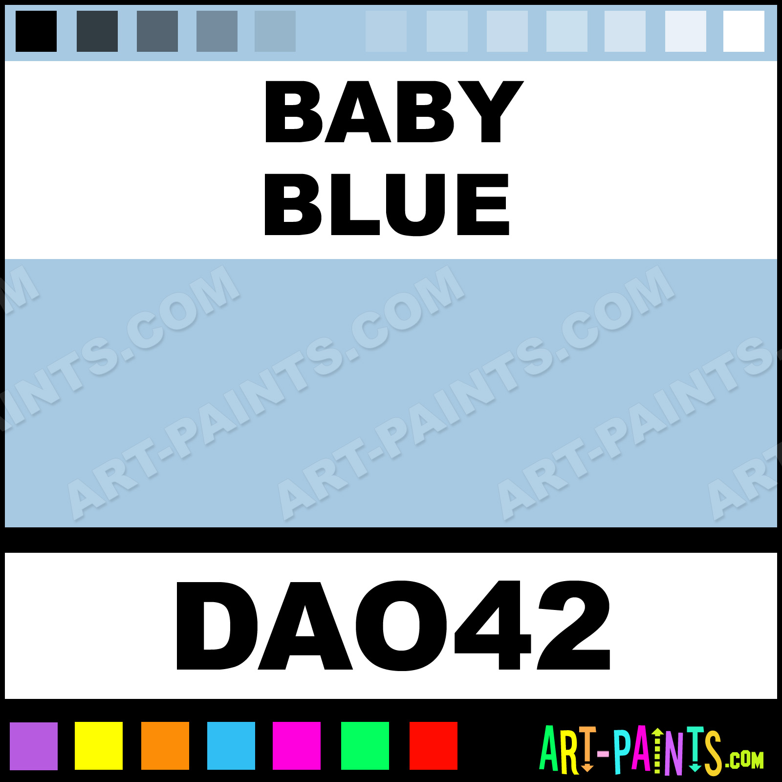This beautiful Americana Foam shade is called Baby Blue, and comes from a company called DecoArt. Whether it be for Foam Painting or Painting on Foam, their product number, along with the HTML color code, RGB, and CMYK codes are listed below. This Beautiful Styrofoam Shade of Baby Blue and others can be found in the DecoArt Americana Paint Gallery! Also be sure to browse through the other Professional Foam Galleries to see more of DecoArt Americana Foam Paints and other Styrofoam Paint Manufacturers!   -Art-Paints.com