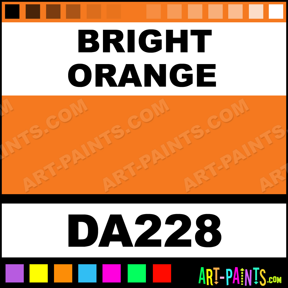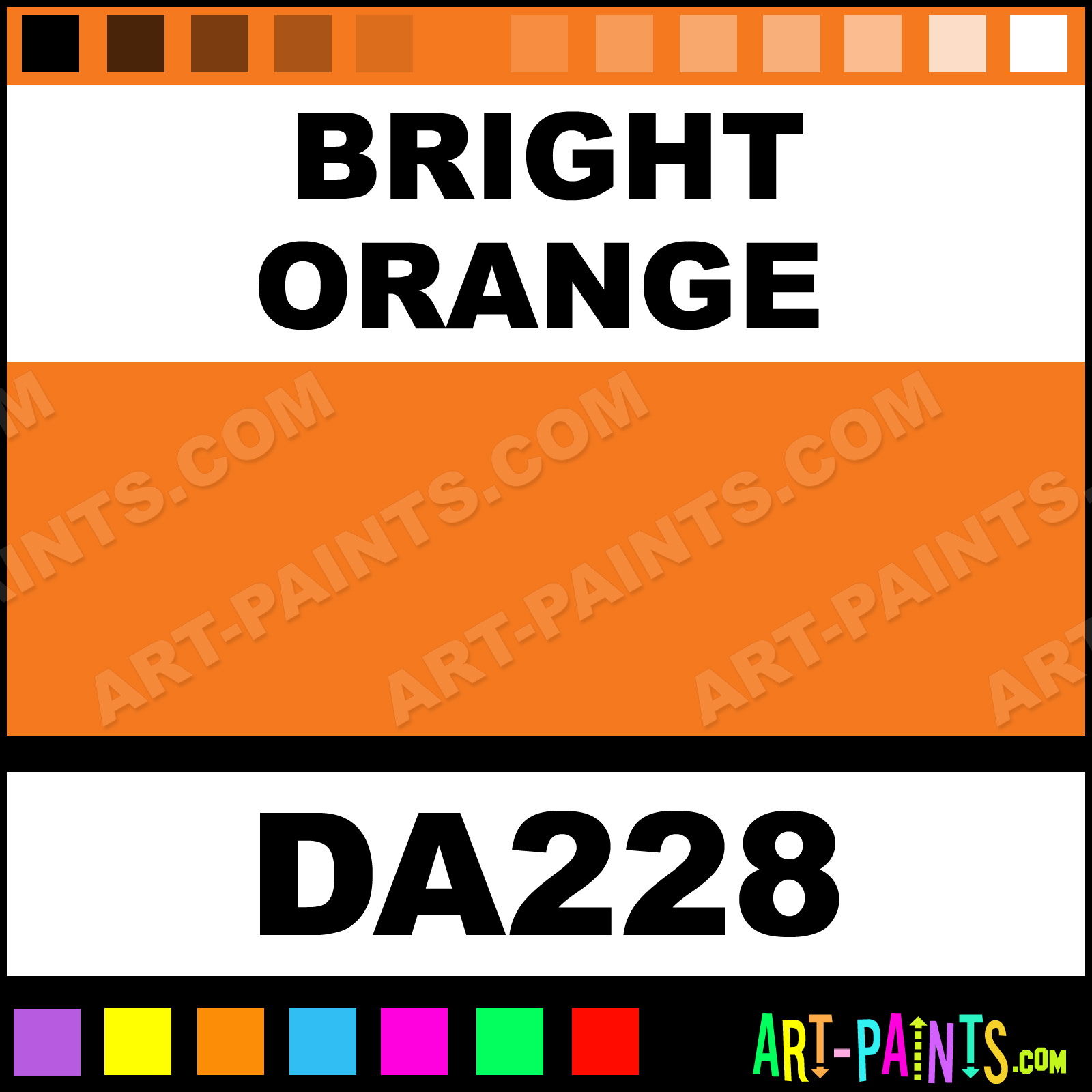 This beautiful Americana Foam shade is called Bright Orange, and comes from a company called DecoArt. Whether it be for Foam Painting or Painting on Foam, their product number, along with the HTML color code, RGB, and CMYK codes are listed below. This Beautiful Styrofoam Shade of Bright Orange and others can be found in the DecoArt Americana Paint Gallery! Also be sure to browse through the other Professional Foam Galleries to see more of DecoArt Americana Foam Paints and other Styrofoam Paint Manufacturers!   -Art-Paints.com