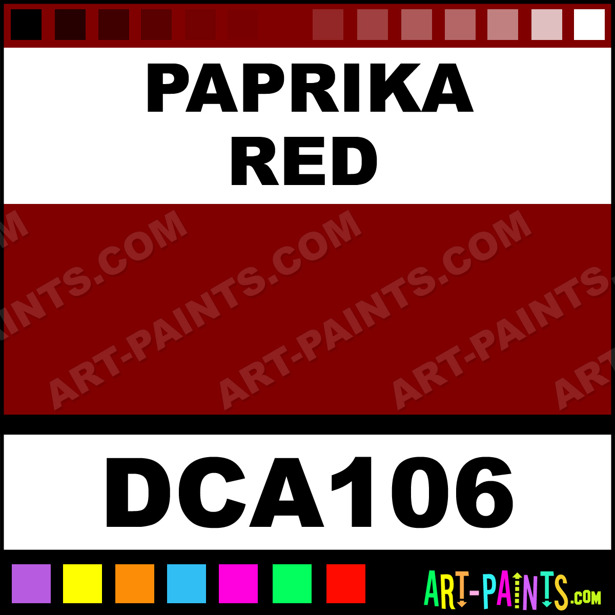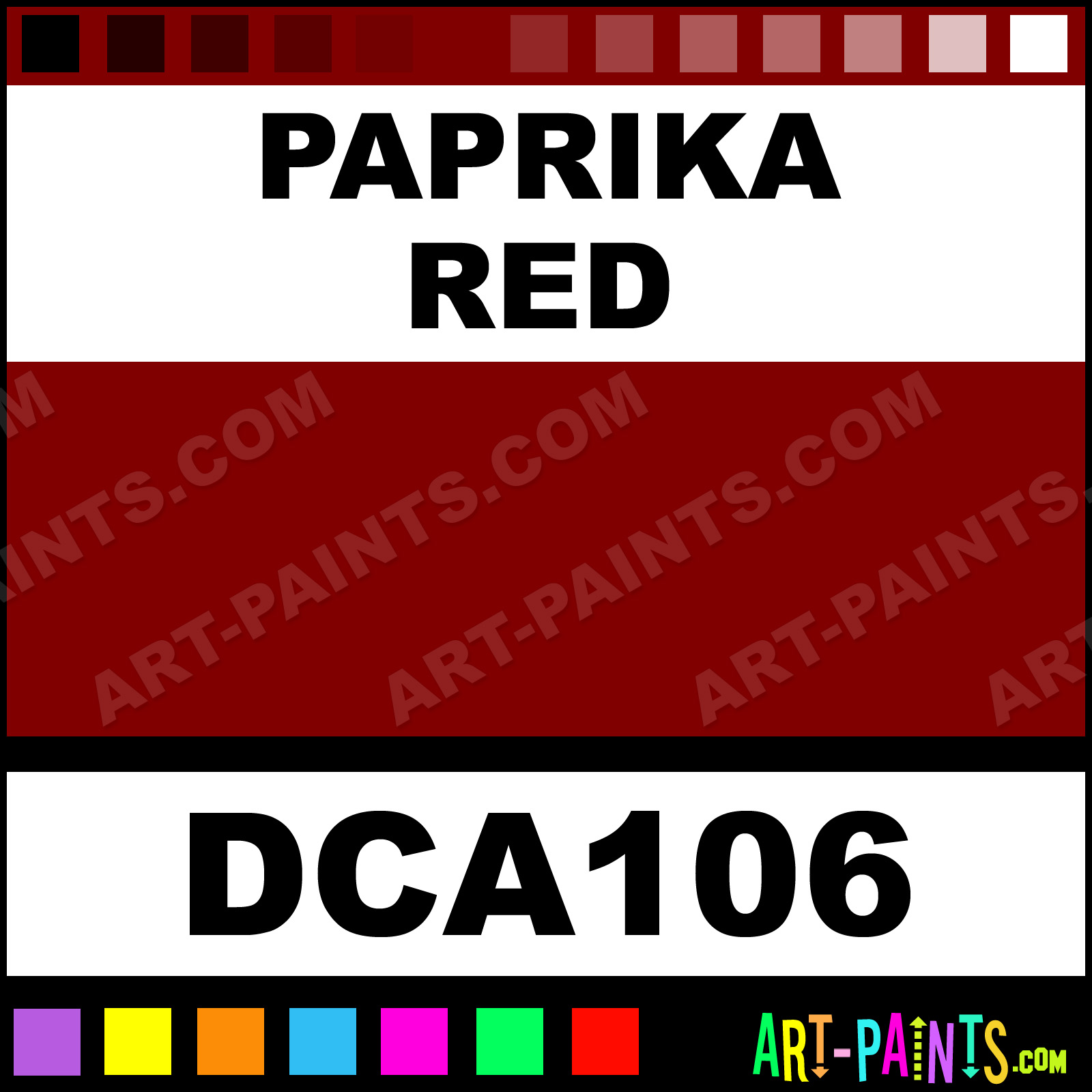 This beautiful Crafters Foam shade is called Paprika Red, and comes from a company called DecoArt. Whether it be for Foam Painting or Painting on Foam, their product number, along with the HTML color code, RGB, and CMYK codes are listed below. This Beautiful Styrofoam Shade of Paprika Red and others can be found in the DecoArt Crafters Paint Gallery! Also be sure to browse through the other Professional Foam Galleries to see more of DecoArt Crafters Foam Paints and other Styrofoam Paint Manufacturers!   -Art-Paints.com