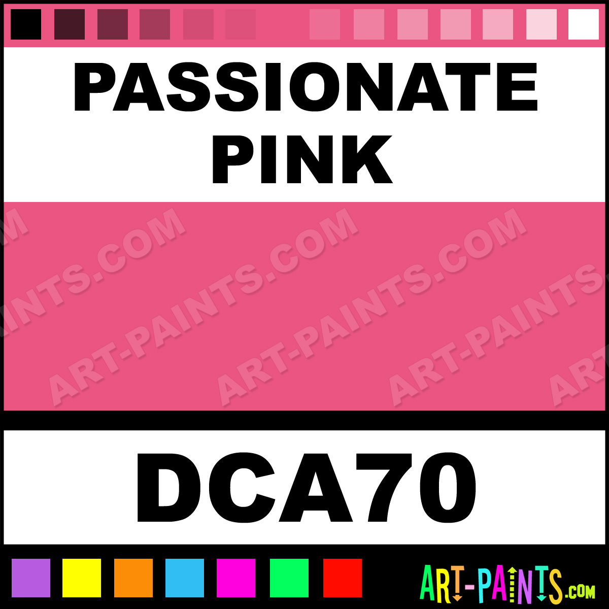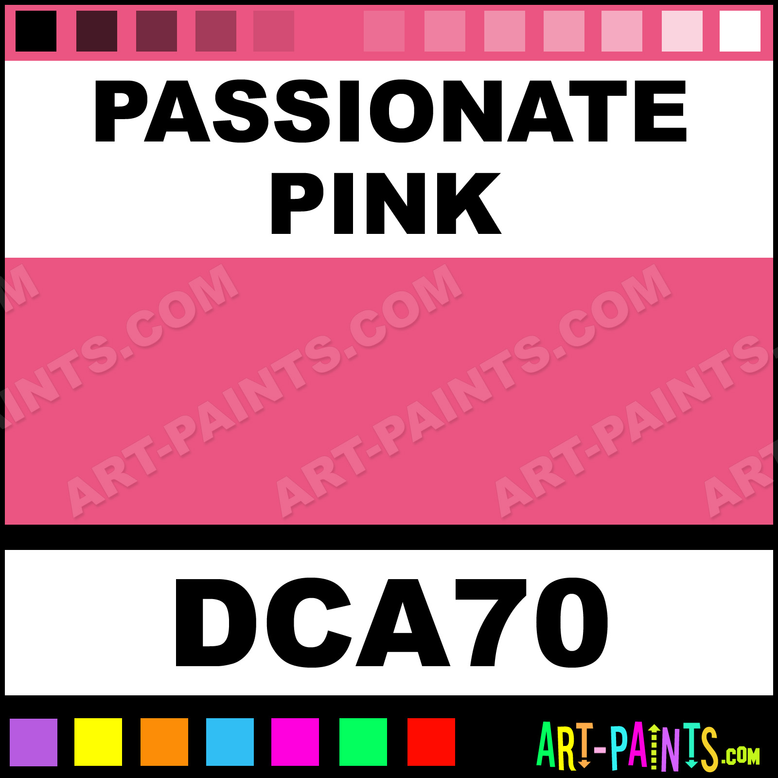 This beautiful Crafters Foam shade is called Passionate Pink, and comes from a company called DecoArt. Whether it be for Foam Painting or Painting on Foam, their product number, along with the HTML color code, RGB, and CMYK codes are listed below. This Beautiful Styrofoam Shade of Passionate Pink and others can be found in the DecoArt Crafters Paint Gallery! Also be sure to browse through the other Professional Foam Galleries to see more of DecoArt Crafters Foam Paints and other Styrofoam Paint Manufacturers!   -Art-Paints.com