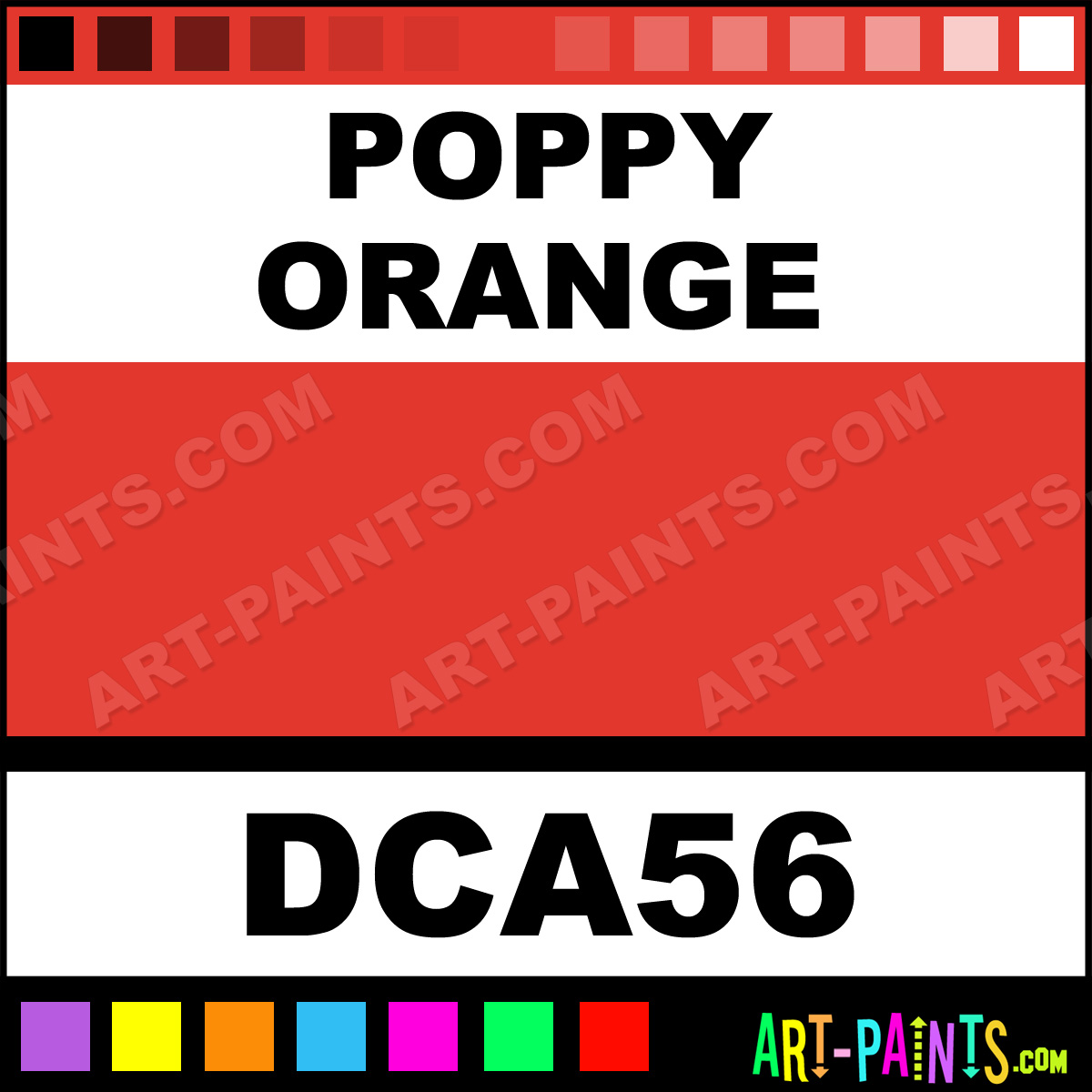 This beautiful Crafters Foam shade is called Poppy Orange, and comes from a company called DecoArt. Whether it be for Foam Painting or Painting on Foam, their product number, along with the HTML color code, RGB, and CMYK codes are listed below. This Beautiful Styrofoam Shade of Poppy Orange and others can be found in the DecoArt Crafters Paint Gallery! Also be sure to browse through the other Professional Foam Galleries to see more of DecoArt Crafters Foam Paints and other Styrofoam Paint Manufacturers!   -Art-Paints.com