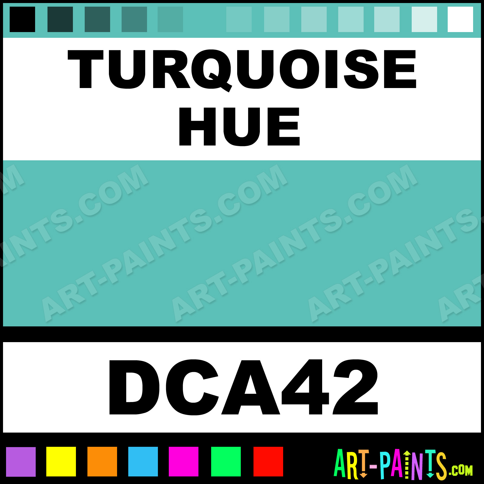 This beautiful Crafters Foam shade is called Turquoise, and comes from a company called DecoArt. Whether it be for Foam Painting or Painting on Foam, their product number, along with the HTML color code, RGB, and CMYK codes are listed below. This Beautiful Styrofoam Shade of Turquoise and others can be found in the DecoArt Crafters Paint Gallery! Also be sure to browse through the other Professional Foam Galleries to see more of DecoArt Crafters Foam Paints and other Styrofoam Paint Manufacturers!   -Art-Paints.com