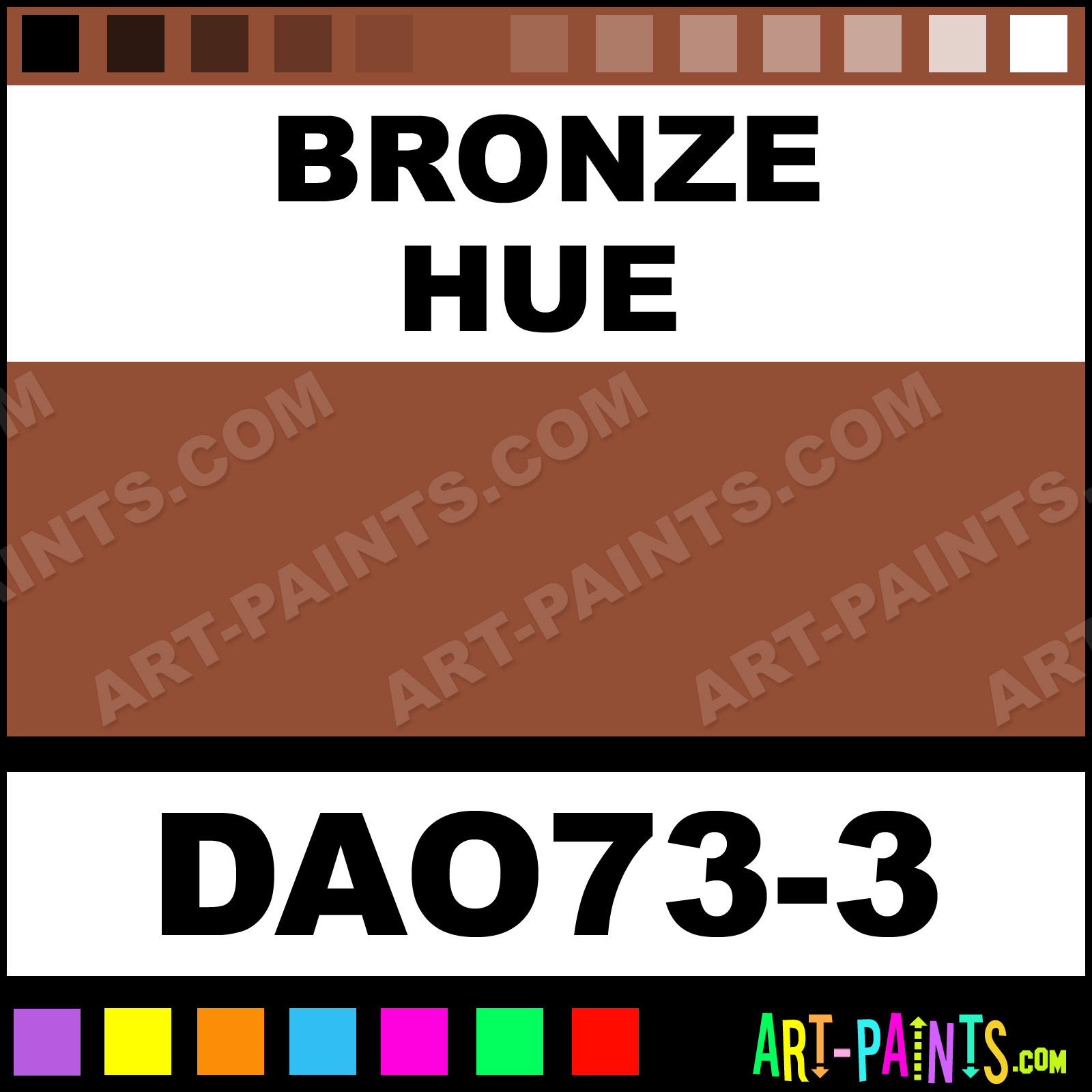 This beautiful Dazzling Metallics Foam shade is called Bronze, and comes from a company called DecoArt. Whether it be for Foam Painting or Painting on Foam, their product number, along with the HTML color code, RGB, and CMYK codes are listed below. This Beautiful Styrofoam Shade of Bronze and others can be found in the DecoArt Dazzling Metallics Paint Gallery! Also be sure to browse through the other Professional Foam Galleries to see more of DecoArt Dazzling Metallics Foam Paints and other Styrofoam Paint Manufacturers!   -Art-Paints.com
