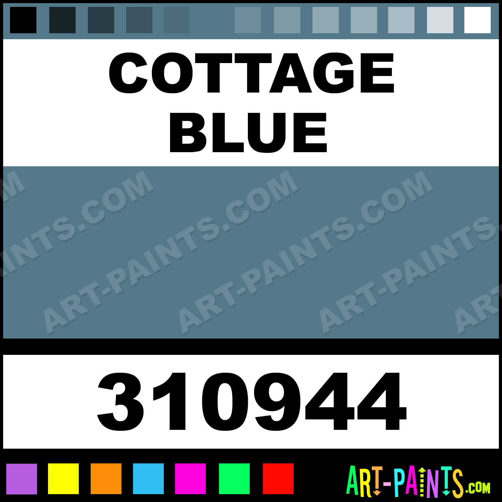 This beautiful Home Accents Satin Finish Foam shade is called Cottage Blue, and comes from a company called Delta. Whether it be for Foam Painting or Painting on Foam, their product number, along with the HTML color code, RGB, and CMYK codes are listed below. This Beautiful Styrofoam Shade of Cottage Blue and others can be found in the Delta Home Accents Satin Finish Paint Gallery! Also be sure to browse through the other Professional Foam Galleries to see more of Delta Home Accents Satin Finish Foam Paints and other Styrofoam Paint Manufacturers!   -Art-Paints.com