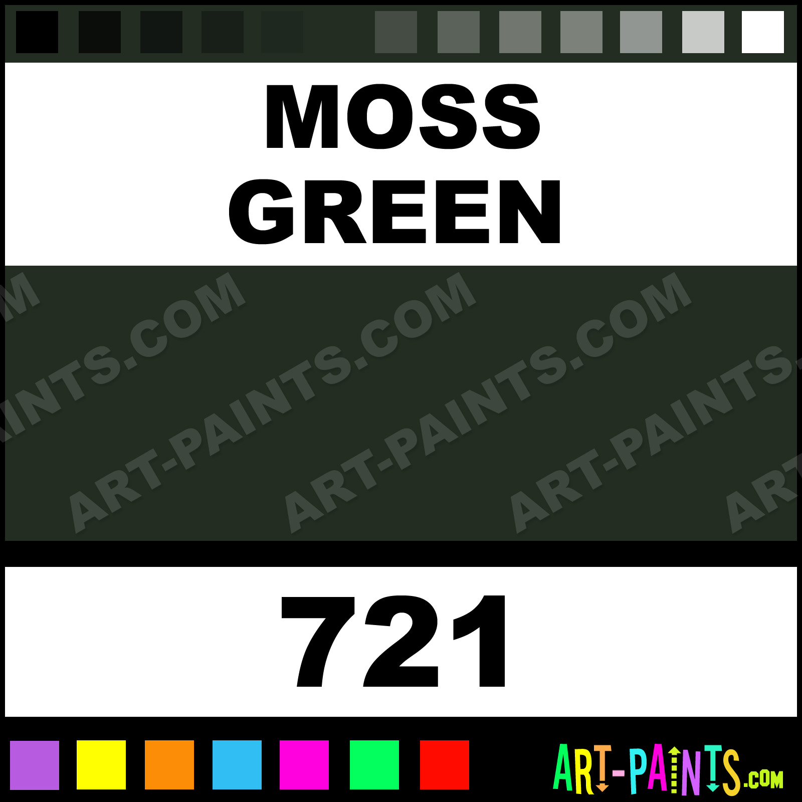 This beautiful Colortool Sprays Foam shade is called Moss Green, and comes from a company called Design Master. Whether it be for Foam Painting or Painting on Foam, their product number, along with the HTML color code, RGB, and CMYK codes are listed below. This Beautiful Styrofoam Shade of Moss Green and others can be found in the Design Master Colortool Sprays Paint Gallery! Also be sure to browse through the other Professional Foam Galleries to see more of Design Master Colortool Sprays Foam Paints and other Styrofoam Paint Manufacturers!   -Art-Paints.com