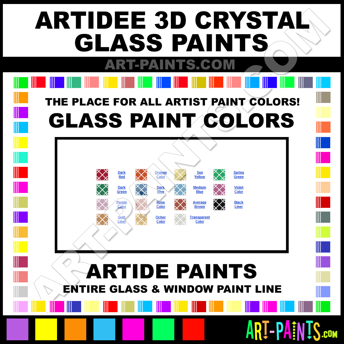 Artidee knows Glass Window Paints! They make a wonderful brand of paint, stains and inks called Artidee 3D Crystal Glass Colors that suits all types of artists. They strive to perfect the process of color and are one of the most popular Glass Paint Brand companies in the world. Enjoy their entire paint brand collection from the list below. Artidee makes wonderful Paints that everyone is sure to enjoy, especially Stained Glass Artists! Choose a Glass Paint below to view that Hue, Tone and all their wonderful Colors.     -Art-Paints.com