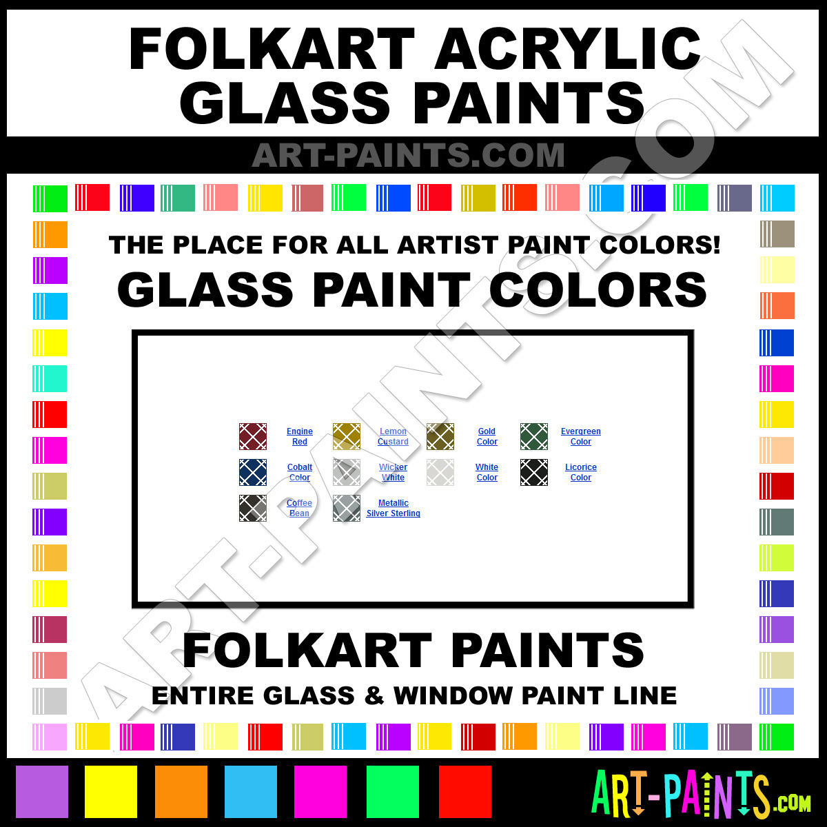 FolkArt knows Glass and Window Paints! They make a wonderful brand of Paints, Stains or Inks called FolkArt Acrylic Glass Paint Colors that suits all types of Artists especially Stained Glass Artists. They strive to perfect the process of color and are one of the most popular Glass and Window Paint Brand companies in the world. Enjoy their entire paint brand collection from the list below. FolkArt makes wonderful Artists Paints that everyone is sure to enjoy! Choose a Paint below to view that Hue or Color.     -Art-Paints.com