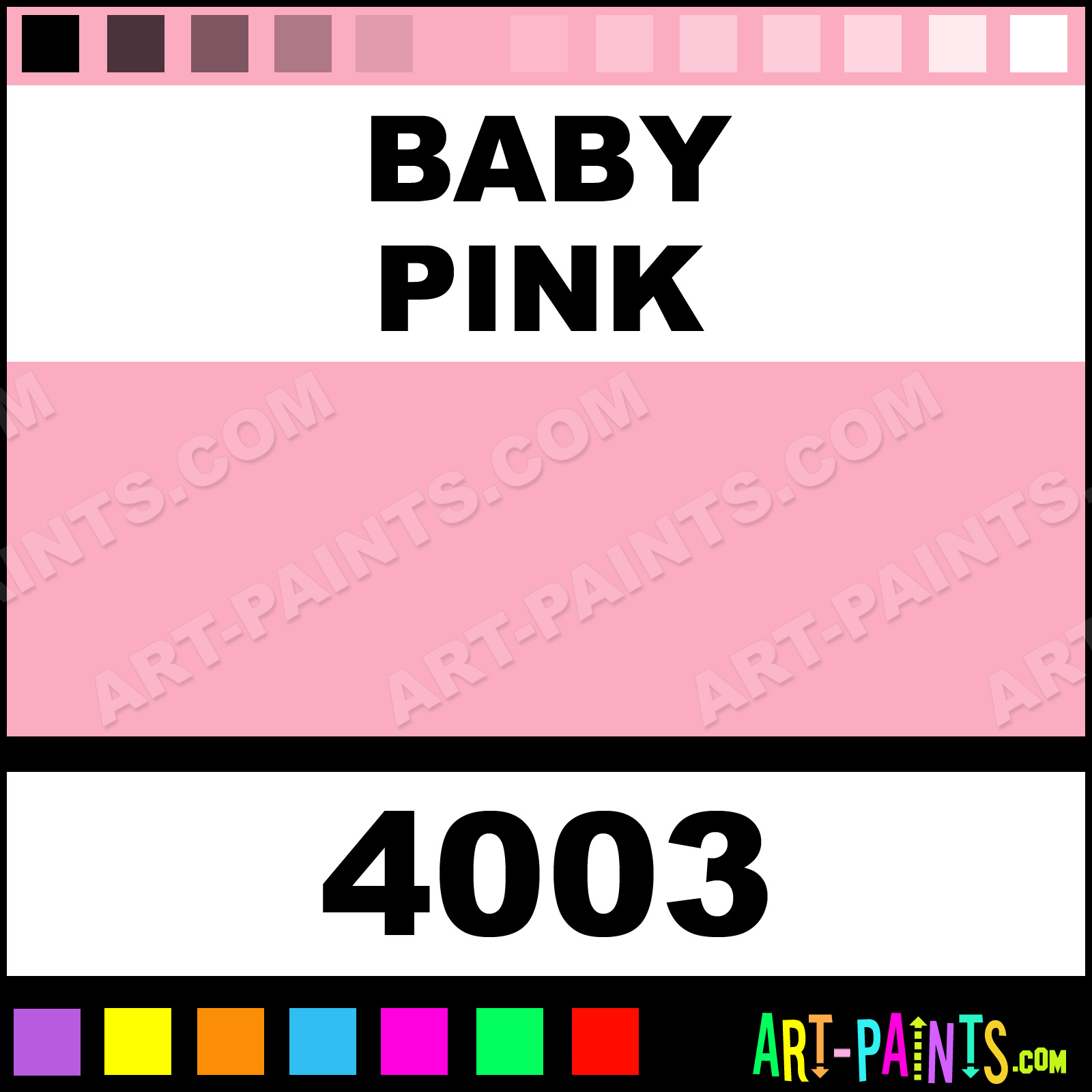 This beautiful Enamels Glass and Window shade is called Baby Pink, and comes from a company called FolkArt. Their product number, along with the HTML color code, RGB, and CMYK codes are listed below. This Beautiful Shade of Baby Pink and others can be found in the FolkArt Enamels Art Paint Gallery, whether it be Paints, Stains, Inks or Stained Glass! Also browse through the other Professional Galleries to see more of FolkArt Enamels Glass Paints and other Stained Glass Manufacturers!   -Art-Paints.com
