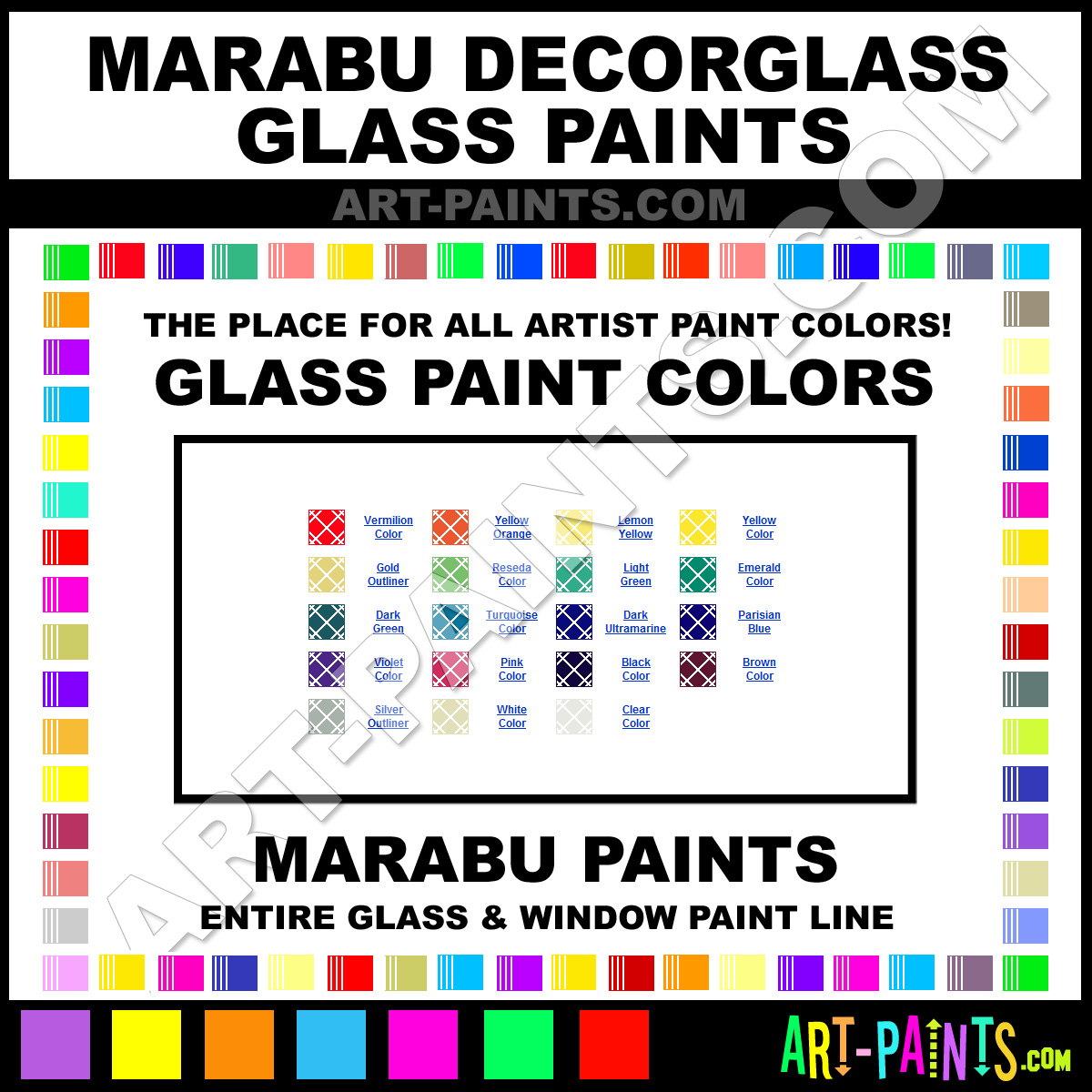 Marabu knows Glass and Window Paints! They make a wonderful brand of Paints, Stains or Inks called Marabu DecorGlass Glass Paint Colors that suits all types of Artists especially Stained Glass Artists. They strive to perfect the process of color and are one of the most popular Glass and Window Paint Brand companies in the world. Enjoy their entire paint brand collection from the list below. Marabu makes wonderful Artists Paints that everyone is sure to enjoy! Choose a Paint below to view that Hue or Color.     -Art-Paints.com