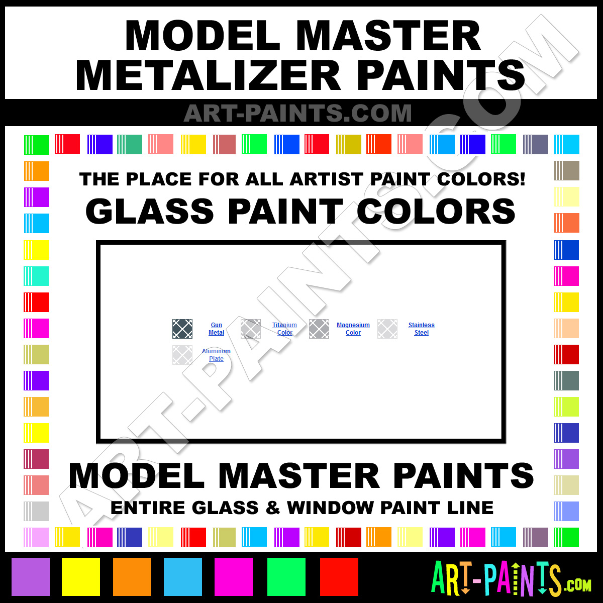 Model Master knows Glass and Window Paints! They make a wonderful brand of Paints, Stains or Inks called Model Master Metalizer Glass Paint Colors that suits all types of Artists especially Stained Glass Artists. They strive to perfect the process of color and are one of the most popular Glass and Window Paint Brand companies in the world. Enjoy their entire paint brand collection from the list below. Model Master makes wonderful Artists Paints that everyone is sure to enjoy! Choose a Paint below to view that Hue or Color.     -Art-Paints.com
