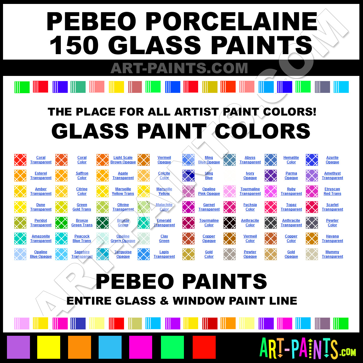 Pebeo knows Glass and Window Paints! They make a wonderful brand of Paints, Stains or Inks called Pebeo Porcelaine 150 Glass Paint Colors that suits all types of Artists especially Stained Glass Artists. They strive to perfect the process of color and are one of the most popular Glass and Window Paint Brand companies in the world. Enjoy their entire paint brand collection from the list below. Pebeo makes wonderful Artists Paints that everyone is sure to enjoy! Choose a Paint below to view that Hue or Color.     -Art-Paints.com