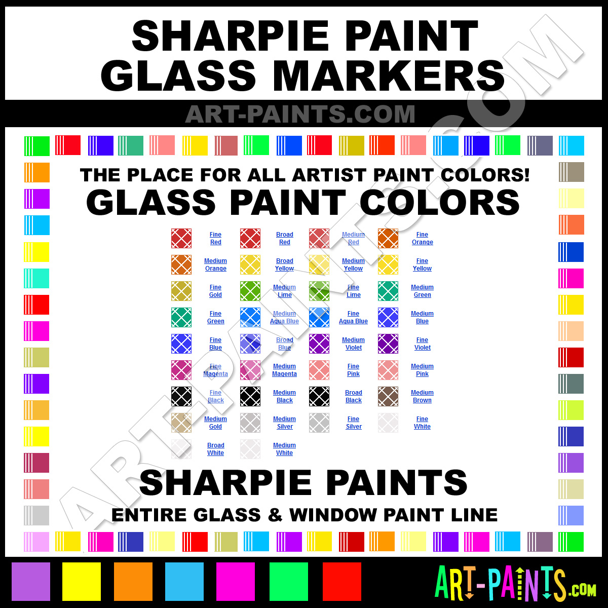 Sharpie knows Glass Window Paints! They make a wonderful brand of paint, stains and inks called Sharpie Paint Marker Glass Colors that suits all types of artists. They strive to perfect the process of color and are one of the most popular Glass Paint Brand companies in the world. Enjoy their entire paint brand collection from the list below. Sharpie makes wonderful Paints that everyone is sure to enjoy, especially Stained Glass Artists! Choose a Glass Paint below to view that Hue, Tone and all their wonderful Colors.     -Art-Paints.com