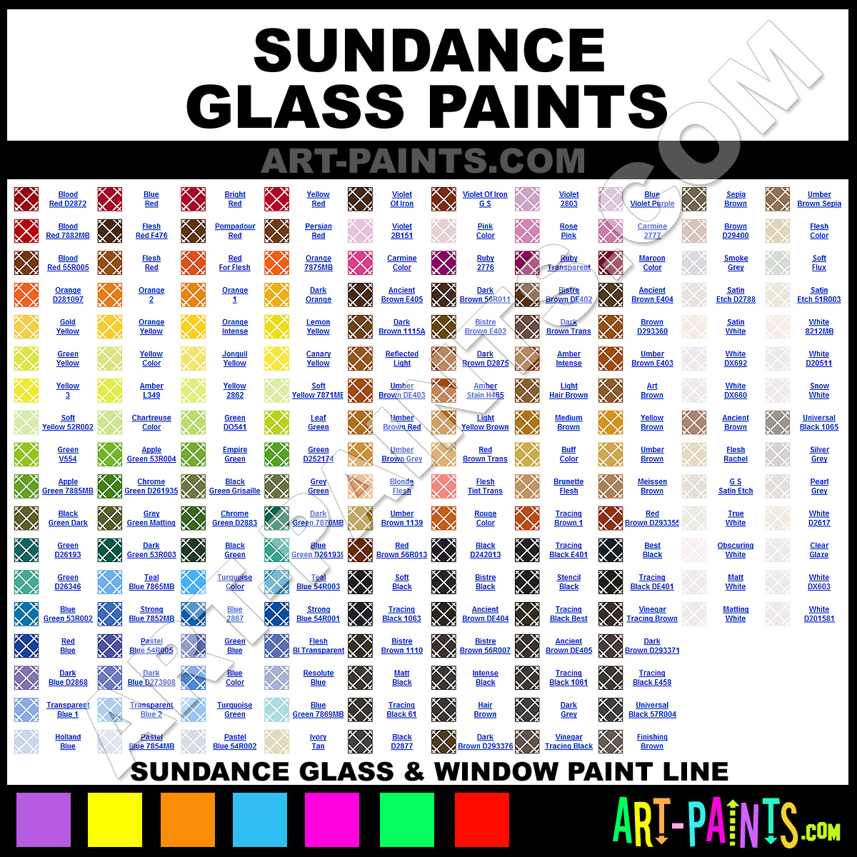 Sundance knows Stained Glass Window Paints! They make wonderful brands of Paints, Inks and Stains for all types of Artists. They strive to perfect the process of Color and are one of the most popular Glass Paint companies in the World. Enjoy their collection below. Sundance makes a couple different types of Glass and Window Paint Brands including its Bullseye Opaque Frit Paints, Bullseye Transparent Frit Paints, Glassline Chalks, Glassline Pens, Luster Powder Paints and Reusche Paints! Choose an Paint type below to view that brand and all their related Hues and Colors!     -Art-Paints.com