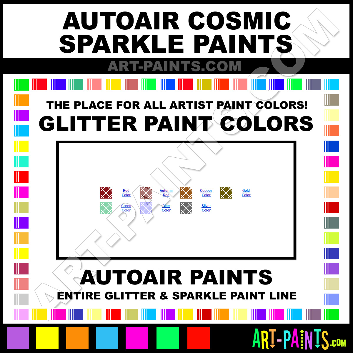 AutoAir knows Glitter Paints, whether it be for Metallics, Shimmers, Pearlescents or Iridescents! They make a wonderful brand of Paint called AutoAir Cosmic Sparkle Glitter Colors that suits all types of Artists. They strive to perfect the process of color and are one of the most popular Glitter Paint companies in the world. Enjoy their entire paint brand collection from the list below. AutoAir makes wonderful Artists Paints that everyone is sure to enjoy! Choose a Glitter Paint below to view that Hue or Color.     -Art-Paints.com