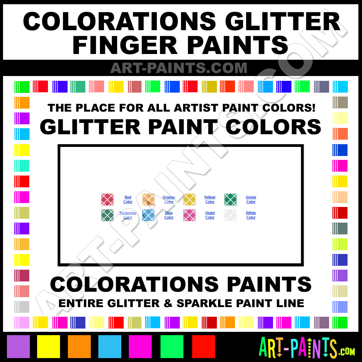 Colorations knows Glitter Paints, whether it be for Metallics, Shimmers, Pearlescents or Iridescents! They make a wonderful brand of Paint called Colorations Glitter Finger Glitter Colors that suits all types of Artists. They strive to perfect the process of color and are one of the most popular Glitter Paint companies in the world. Enjoy their entire paint brand collection from the list below. Colorations makes wonderful Artists Paints that everyone is sure to enjoy! Choose a Glitter Paint below to view that Hue or Color.     -Art-Paints.com