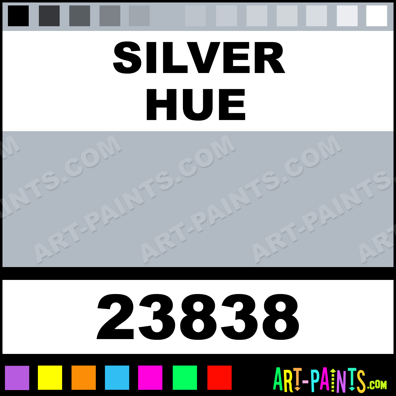 This beautiful Glitter Glue Glitter Sparkle shade is called Silver, and comes from a company called Crayola. Their product number, along with the HTML color code, RGB, and CMYK codes are listed below. This Beautiful Shade of Silver and others can be found in the Crayola Glitter Glue Art Paint Gallery, whether it's for Glitters, Metallics, Shimmers, Pearlescents or Iridescents, it's here! Also be sure to browse the other Professional Galleries to see more of Crayola Glitter Glue Glitter Brand Paints!   -Art-Paints.com