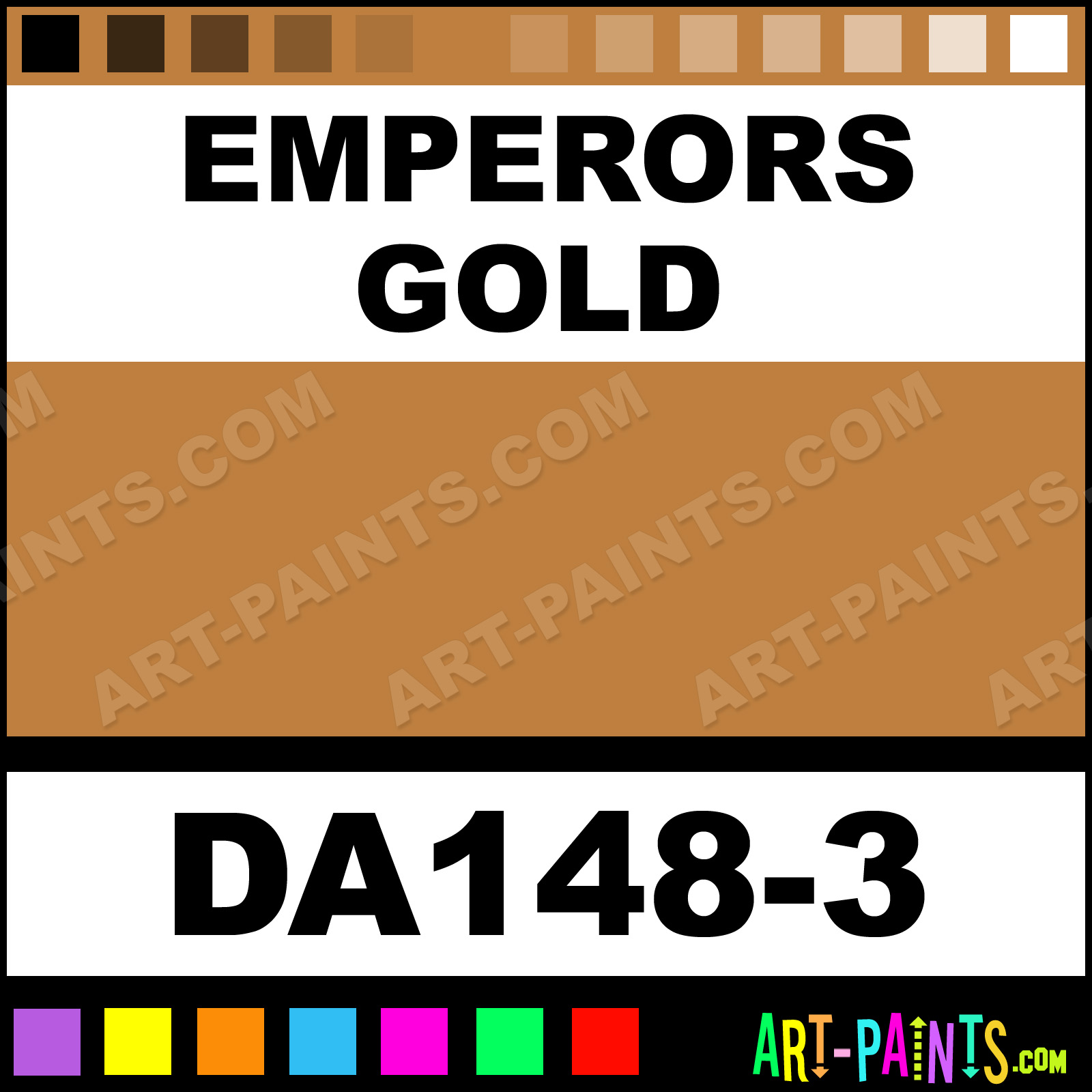 This beautiful Dazzling Metallics Glitter Sparkle shade is called Emperors Gold, and comes from a company called DecoArt. Their product number, along with the HTML color code, RGB, and CMYK codes are listed below. This Beautiful Shade of Emperors Gold and others can be found in the DecoArt Dazzling Metallics Art Paint Gallery, whether it's for Glitters, Metallics, Shimmers, Pearlescents or Iridescents, it's here! Also be sure to browse the other Professional Galleries to see more of DecoArt Dazzling Metallics Glitter Brand Paints!   -Art-Paints.com