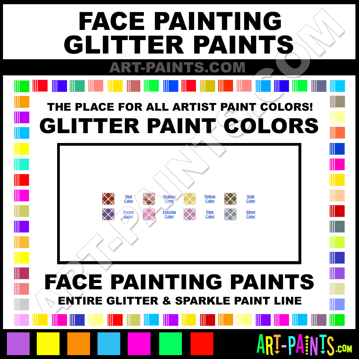Face Painting knows Glitter Paints! They make a wonderful brand of paint called Face Painting Glitter Glitter Colors that suits all types of artists. They strive to perfect the process of color and are one of the most popular Glitter Paint companies in the world, whether it's for Glitter, Sparklers, Metallics, Shimmers, Pearlescents or Iridescents, these Paints are for you! Enjoy their entire paint brand collection from the list below. Face Painting makes wonderful Artists Paints that everyone is sure to enjoy! Choose a Glitter Paint Color below to view that Hue, Tone or Color.     -Art-Paints.com