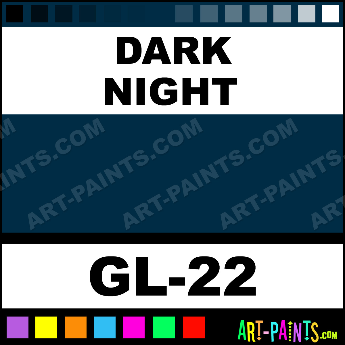 This beautiful Cosmetic Glitter Glitter Sparkle shade is called Dark Night, and comes from a company called GRL. Their product number, along with the HTML color code, RGB, and CMYK codes are listed below. This Beautiful Shade of Dark Night and others can be found in the GRL Cosmetic Glitter Art Paint Gallery, whether it's for Glitters, Metallics, Shimmers, Pearlescents or Iridescents, it's here! Also be sure to browse the other Professional Galleries to see more of GRL Cosmetic Glitter Glitter Brand Paints!   -Art-Paints.com