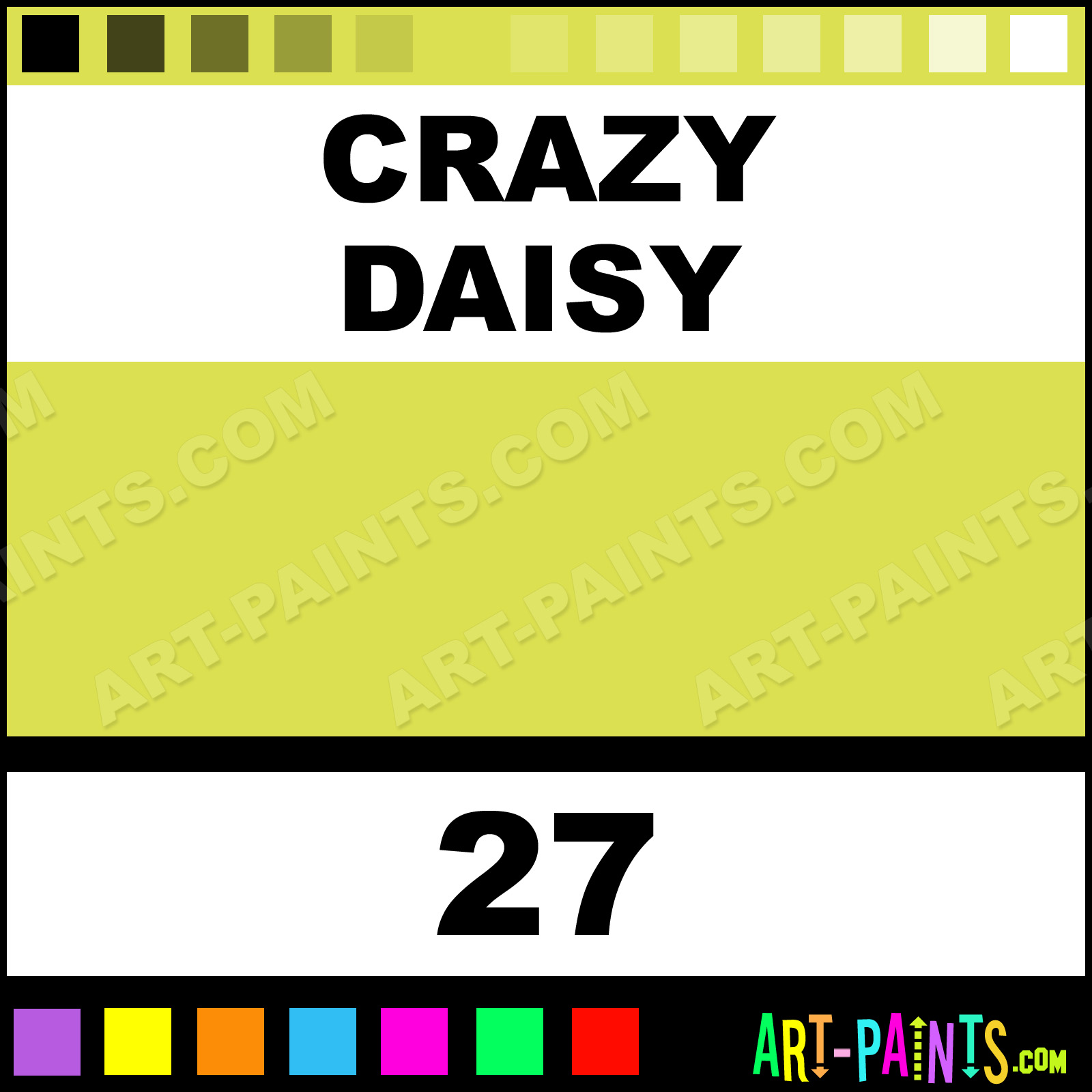 This beautiful Glitter Stacks Glitter Sparkle shade is called Crazy Daisy, and comes from a company called GRL. Their product number, along with the HTML color code, RGB, and CMYK codes are listed below. This Beautiful Shade of Crazy Daisy and others can be found in the GRL Glitter Stacks Art Paint Gallery, whether it's for Glitters, Metallics, Shimmers, Pearlescents or Iridescents, it's here! Also be sure to browse the other Professional Galleries to see more of GRL Glitter Stacks Glitter Brand Paints!   -Art-Paints.com
