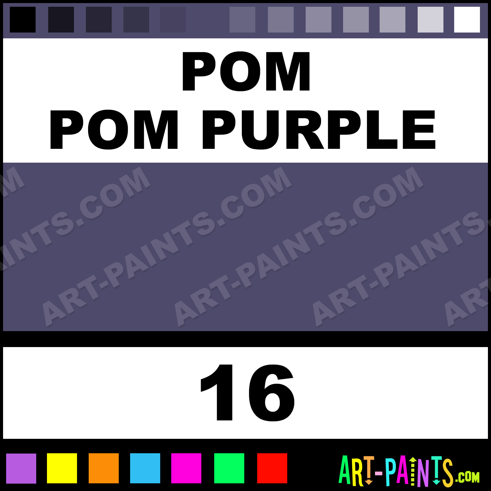This beautiful Shimmer Glitter Glitter Sparkle shade is called Pom Pom Purple, and comes from a company called GRL. Their product number, along with the HTML color code, RGB, and CMYK codes are listed below. This Beautiful Shade of Pom Pom Purple and others can be found in the GRL Shimmer Glitter Art Paint Gallery, whether it's for Glitters, Metallics, Shimmers, Pearlescents or Iridescents, it's here! Also be sure to browse the other Professional Galleries to see more of GRL Shimmer Glitter Glitter Brand Paints!   -Art-Paints.com