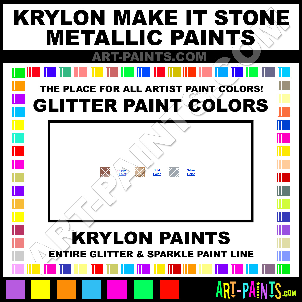 Krylon knows Glitter Paints, whether it be for Metallics, Shimmers, Pearlescents or Iridescents! They make a wonderful brand of Paint called Krylon Make It Stone Metallic Glitter Colors that suits all types of Artists. They strive to perfect the process of color and are one of the most popular Glitter Paint companies in the world. Enjoy their entire paint brand collection from the list below. Krylon makes wonderful Artists Paints that everyone is sure to enjoy! Choose a Glitter Paint below to view that Hue or Color.     -Art-Paints.com