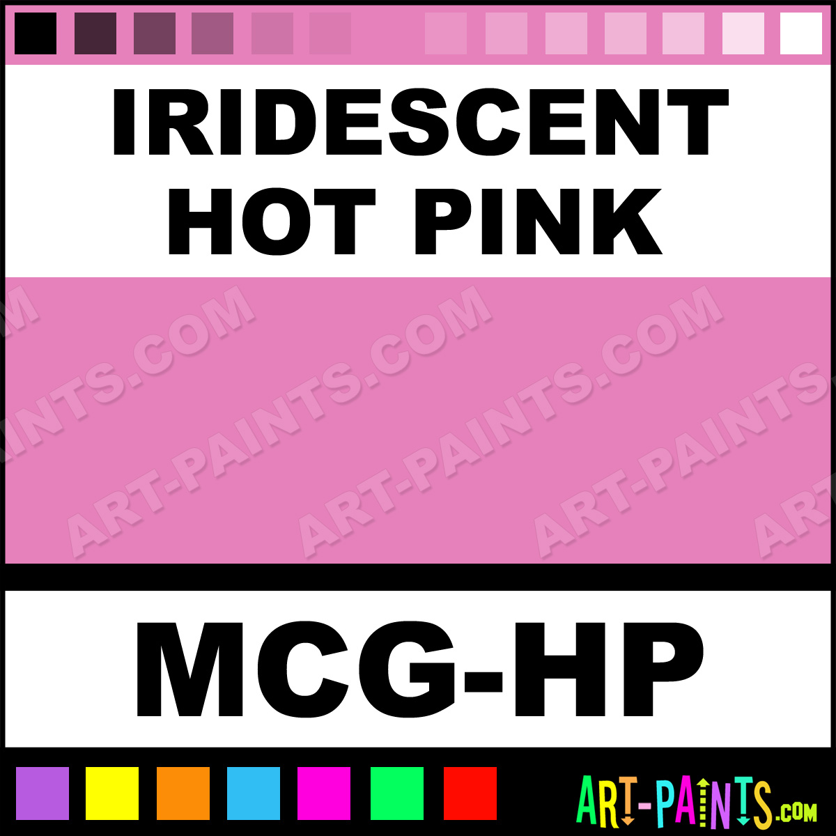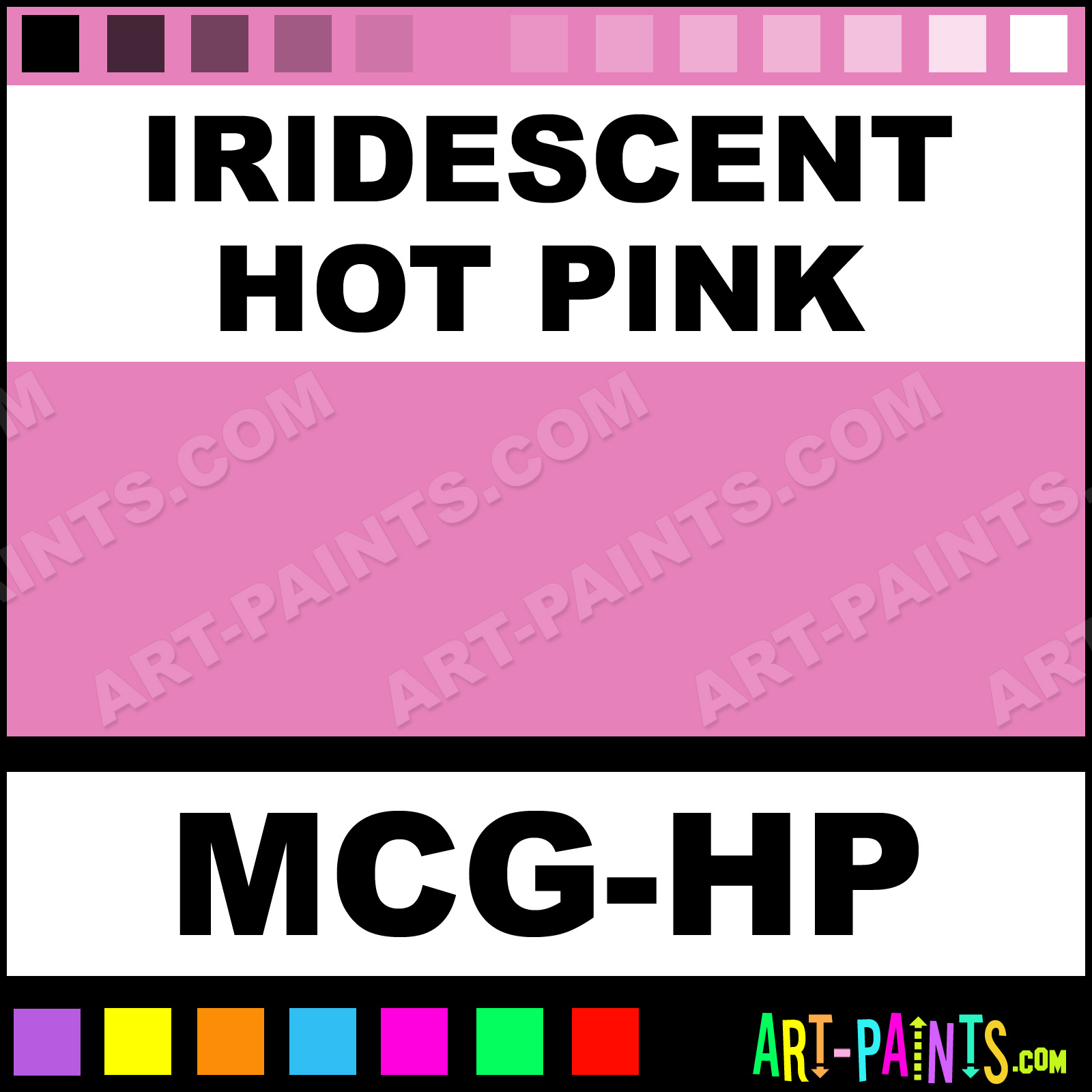 This beautiful Body Glitter Sparkle shade is called Iridescent Hot Pink, and comes from a company called Mama Clown. The product number, along with the HTML color code, RGB, and CMYK codes are listed below. This Shade, whether it be Iridescent, Pearlescent, Shimmer, Glitter or Metallic is called Iridescent Hot Pink and can be found in the Mama Clown Body Art Paint Gallery! Be sure to browse through the other Galleries to see more of Mama Clown Body Glitter Brand Paints and other Paint Manufacturers!   -Art-Paints.com