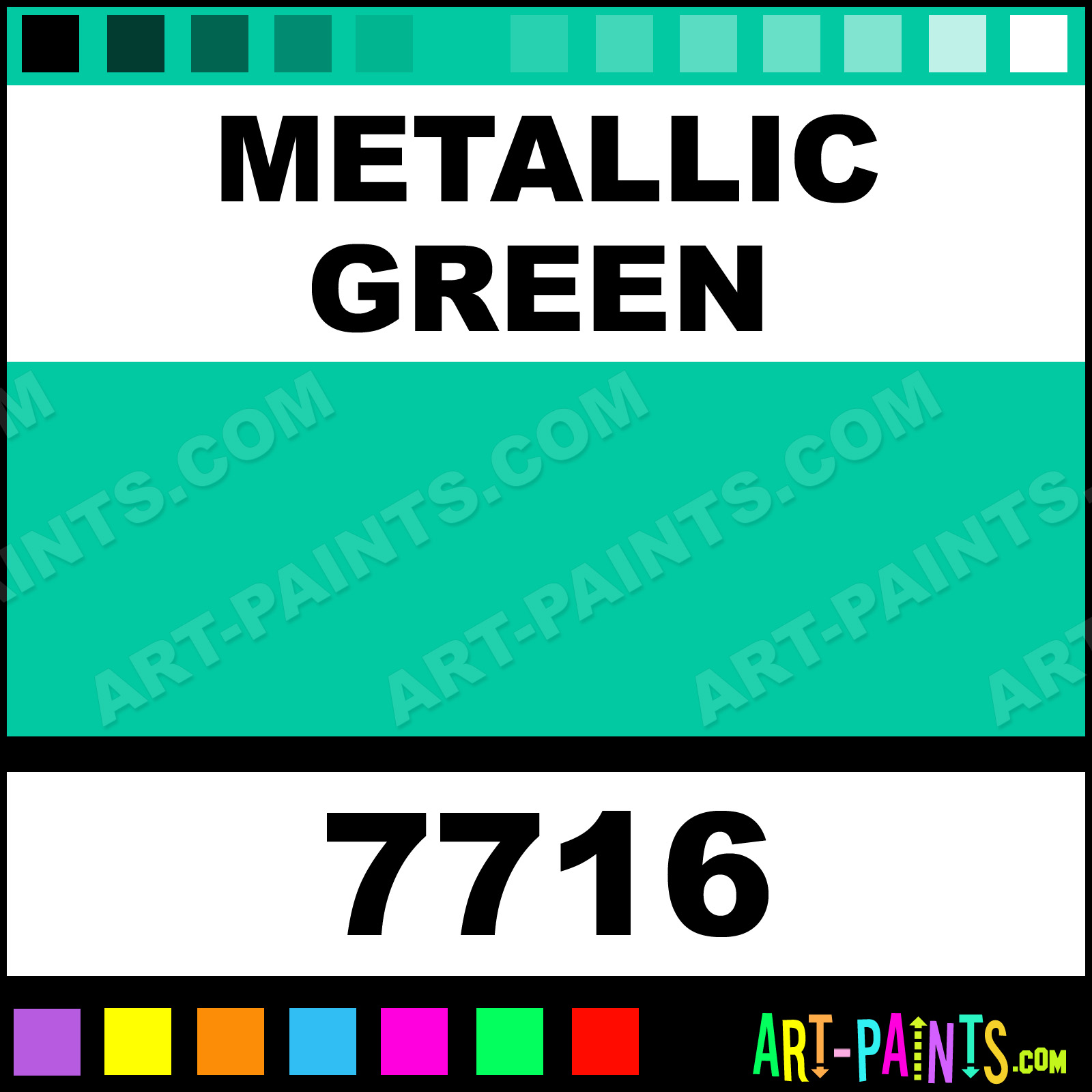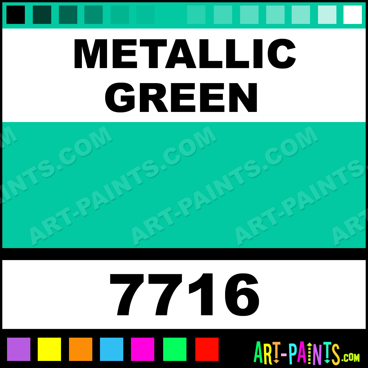 This beautiful Ultra Washable Tempera Glitter Sparkle shade is called Metallic Green, and comes from a company called Prang. Their product number, along with the HTML color code, RGB, and CMYK codes are listed below. This Beautiful Shade of Metallic Green and others can be found in the Prang Ultra Washable Tempera Art Paint Gallery, whether it's for Glitters, Metallics, Shimmers, Pearlescents or Iridescents, it's here! Also be sure to browse the other Professional Galleries to see more of Prang Ultra Washable Tempera Glitter Brand Paints!   -Art-Paints.com