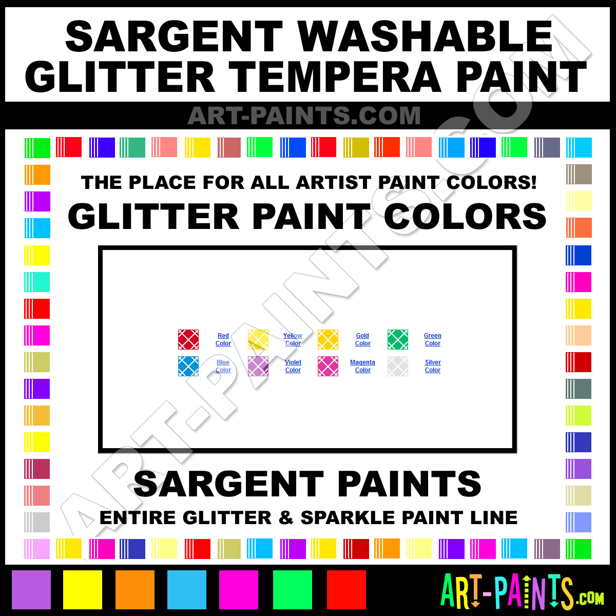 Sargent knows Glitter Paints, whether it be for Metallics, Shimmers, Pearlescents or Iridescents! They make a wonderful brand of Paint called Sargent Washable Glitter Tempera Glitter Colors that suits all types of Artists. They strive to perfect the process of color and are one of the most popular Glitter Paint companies in the world. Enjoy their entire paint brand collection from the list below. Sargent makes wonderful Artists Paints that everyone is sure to enjoy! Choose a Glitter Paint below to view that Hue or Color.     -Art-Paints.com