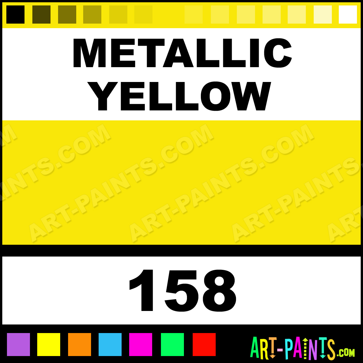 This beautiful Metallic Glitter Sparkle shade is called Metallic Yellow, and comes from a company called Spectra Tex. The product number, along with the HTML color code, RGB, and CMYK codes are listed below. This Shade, whether it be Iridescent, Pearlescent, Shimmer, Glitter or Metallic is called Metallic Yellow and can be found in the Spectra Tex Metallic Art Paint Gallery! Be sure to browse through the other Galleries to see more of Spectra Tex Metallic Glitter Brand Paints and other Paint Manufacturers!   -Art-Paints.com